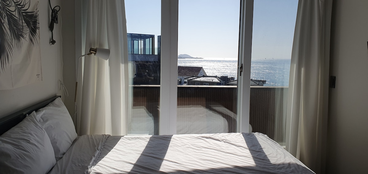 Hola. Queremos crear un espacio que te haga olvidar la congestión del centro de la ciudad con el sonido de las olas del mar. Nuestro espacio, que se encuentra a 20 minutos del aeropuerto, ofrece vistas al mar azul de Jeju desde todas las habitaciones. Composición del espacio Espacio de 12 pyeong de 3 pisos de altura (con ascensor) 1. Espacio de dormitorio : La habitación es un espacio tipo estudio con cocina. Cama, TV de pared, mesa de té y mesa para dos, perchero, soporte, fregadero, aire acondicionado, frigorífico pequeño (congelador separado), inducción 2. Cocina : Platos y utensilios de cocina para 2 personas 3. Baño : Ducha de girasol, toallas, champú, acondicionador, gel de baño, jabón, papel higiénico (por favor, tenga en cuenta que no es posible proporcionar cepillos de dientes debido a la Ley de Control de Higiene). 4. Terraza 5. Zona de barbacoa Ocean barbacoa conectada al mar: 20 000 wones (proporcionamos carbón y parrilla). Al lado del vestíbulo, hay un área de barbacoa separada en caso de lluvia. 6. Estacionamiento: Estacionamiento eléctrico disponible. 7. Solicite por separado la lavandería y la secadora en la entrada del primer piso. Gracias.