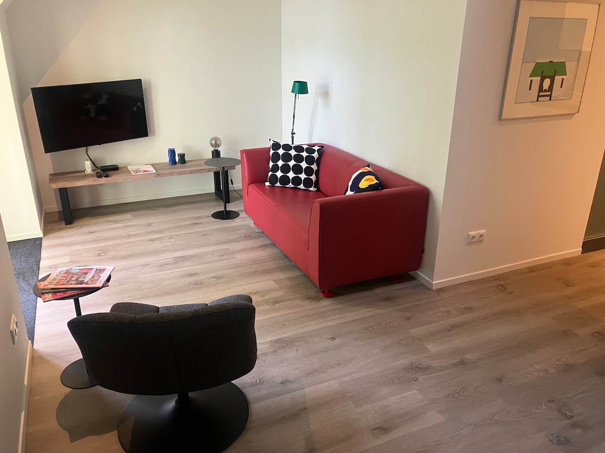 La casa donde vivía el granjero con su familia se ha convertido en un cómodo apartamento con un amplio salón y cocina abierta en la planta baja, con vistas a los prados y a la iglesia de Wanswert. El apartamento está completamente amueblado con un estilo personal. Siempre que ha sido posible, hemos utilizado muebles de segunda mano. Junto con el piano y la cómoda estufa de leña, se crea un ambiente agradable. El apartamento tiene un acogedor jardín privado alrededor, su propia puerta principal y mucha privacidad.