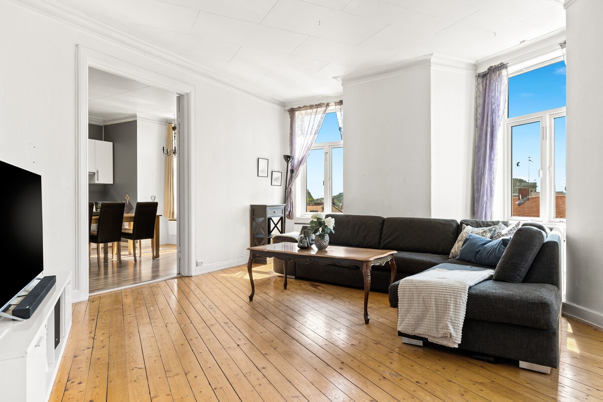 Amplio y colorido apartamento en el distrito de Damhaugen, situado en el centro de Halden. Zona tranquila y tranquila con calles empedradas recién restauradas, rodeada de granjas urbanas de la década de 1910. ¡Distancia caminando a la mayoría de las cosas que Halden tiene que ofrecer! Fortaleza de Fredriksten, centro comercial, cafeterías, instalaciones de senderismo y fitness, puerto de barcos y vida nocturna. Estación de tren: 1 km, 15 min. Parada de autobús: 350 metros.