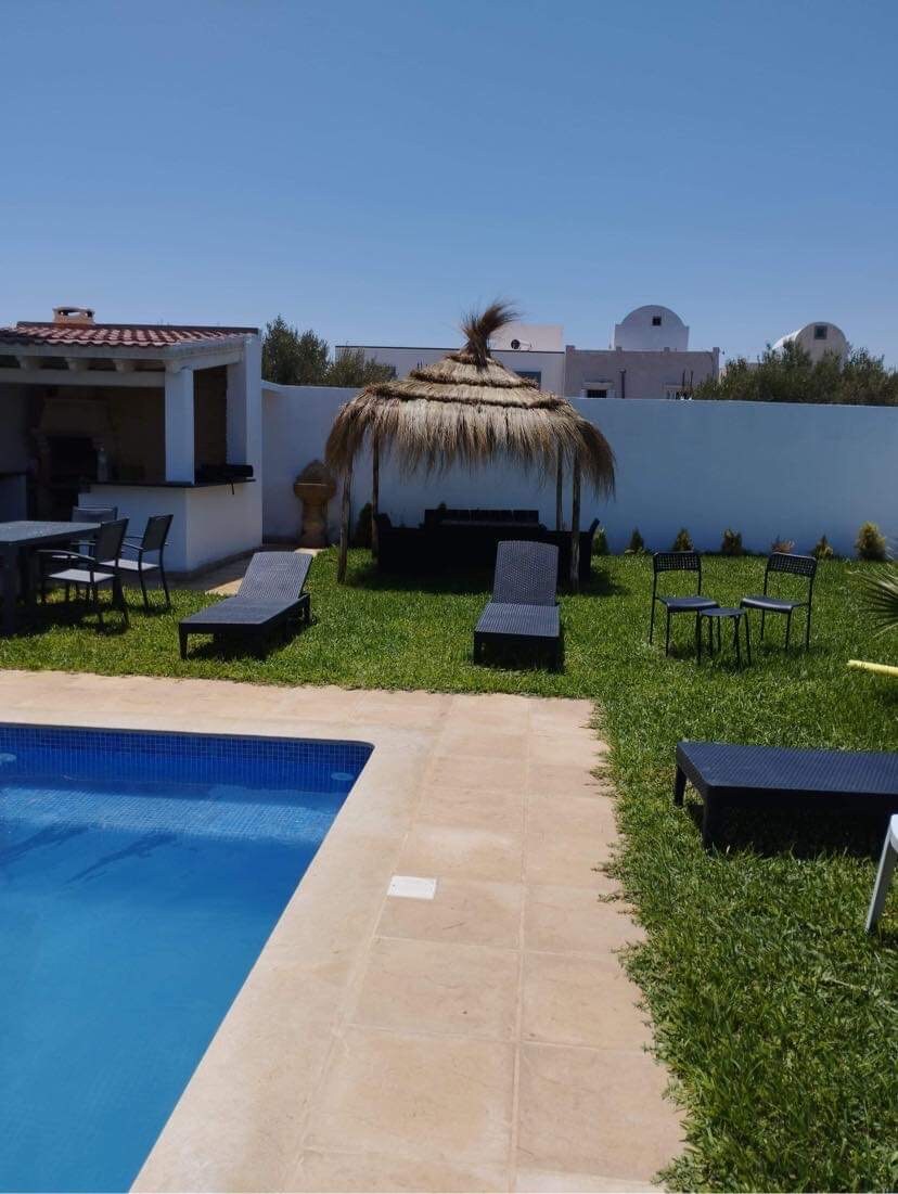 Nota: Por favor, consúlteme por mensaje para discutir algunos detalles de la estadía antes de enviarme una solicitud de reserva ✅Lujosa villa con piscina privada, a 2 minutos en auto de la playa residencia jannet y a 500 m del mercado carrefour ✅Gran piscina y jardín ✅En la planta baja: amplio salón con vistas a la piscina,gran sala de estar,cocina ricamente equipada:lavadora,lavavajillas y un baño. ✅En la 1.ª planta, 3 dormitorios, uno de ellos suite principal (baño con jacuzzi), más un tercer baño
