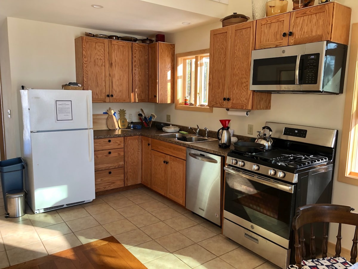Preciosa y única casa de huéspedes con techos de catedral, cúpula, cubiertas delanteras y traseras, porche con tres paredes, cocina totalmente funcional con estufa Wolf, lavavajillas, nevera de tamaño completo, aire acondicionado, ventiladores de techo, AppleTV, internet, dos estufas de leña (gas, madera). A una milla del centro de Northampton, cerca del parque Childs, ambiente de retiro. ¡Espacio inolvidable!