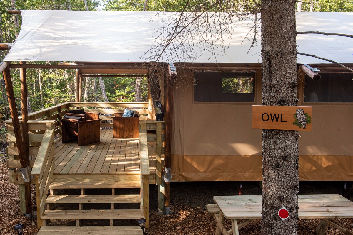 Tienda de campaña búho @ Acadia NP. Tarifas de Airbnb pagadas por el anfitrión.