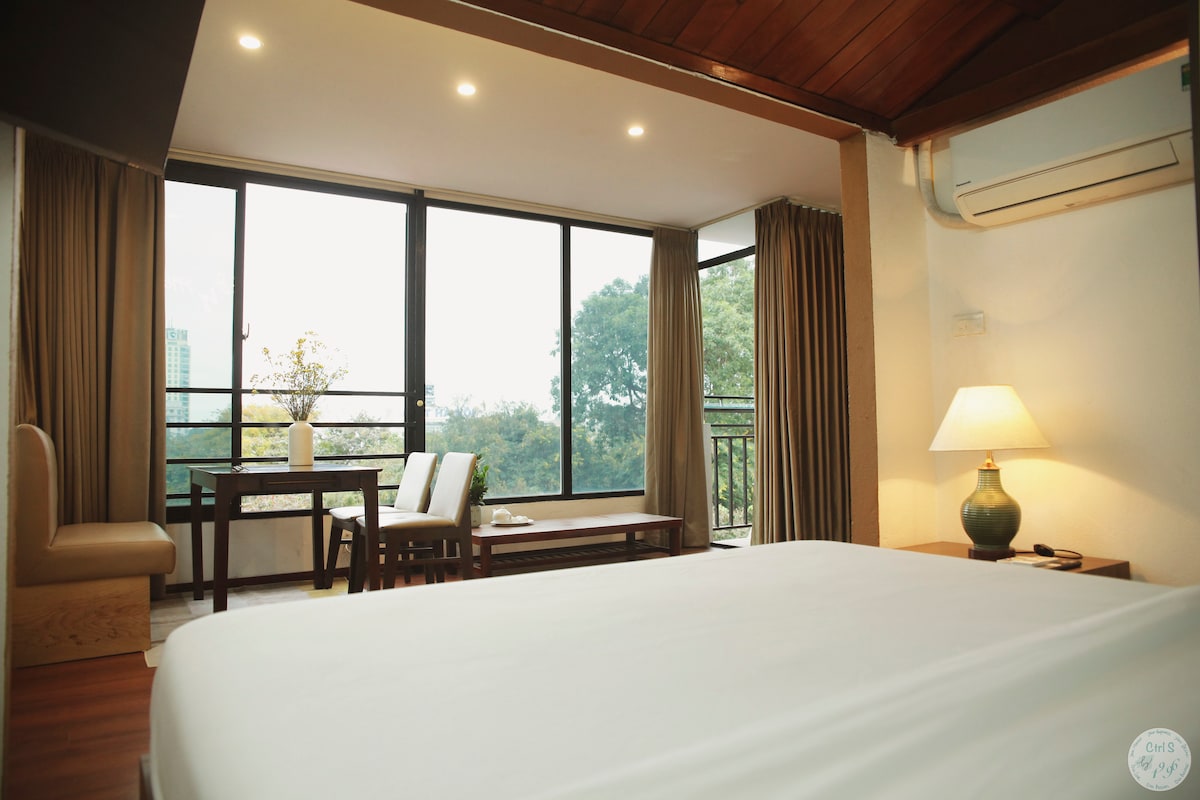 Disfruta del casco antiguo de Hanói desde un refugio moderno a solo unos pasos de la icónica TRAIN STREET. Este apartamento cuenta con una CAMA TAMAÑO SUPER KING, UN SILLÓN CÓMODO y un baño de lujo con ducha y BAÑERA DE MADERA. Cocina en tu COCINA PRIVADA y relájate con el PROYECTOR de 100 PULGADAS y el wifi. Una GRAN VENTANA INSONORIZADA ofrece vistas animadas a la calle, combinando el encanto de Hanói con las comodidades del hogar. Ideal para viajeros que buscan una estancia única y tranquila en el corazón de la ciudad.
