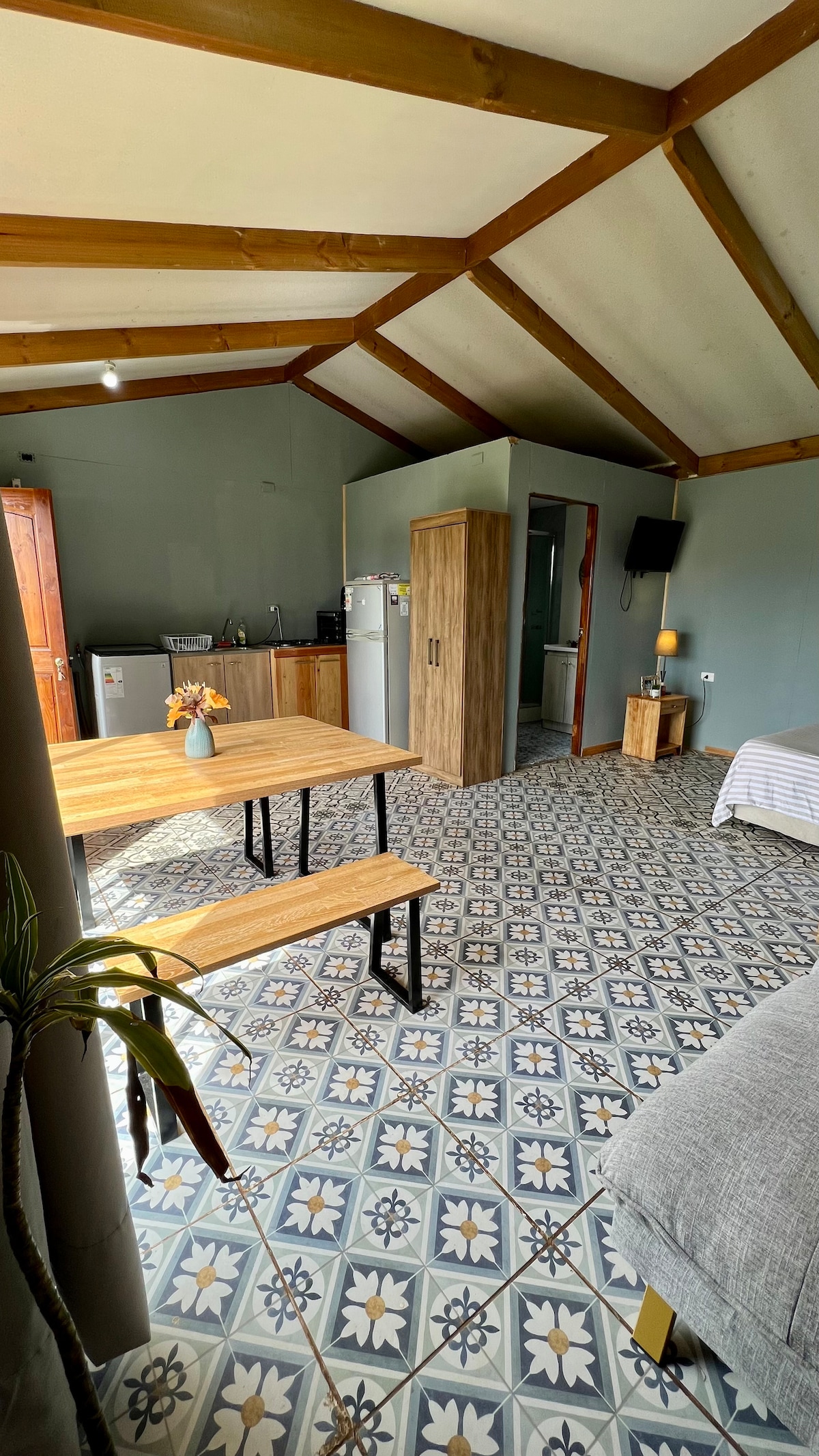 Cabaña Kia Ora, alojamiento cómodo y acogedor, ideal para una pareja que busca descansar y disfrutar de la tranquilidad de Rapa Nui. Ubicada en un entorno natural y sereno, la cabaña se encuentra a solo 5 minutos en auto (25 minutos caminando) del centro de Hanga Roa, donde encontrarás restaurantes, tiendas y puntos de interés cultural. Espacio pensado para ofrecer una estadía relajante, con todo lo necesario para tu comodidad. Lugar perfecto para disfrutar de la autenticidad de Isla de Pascua.