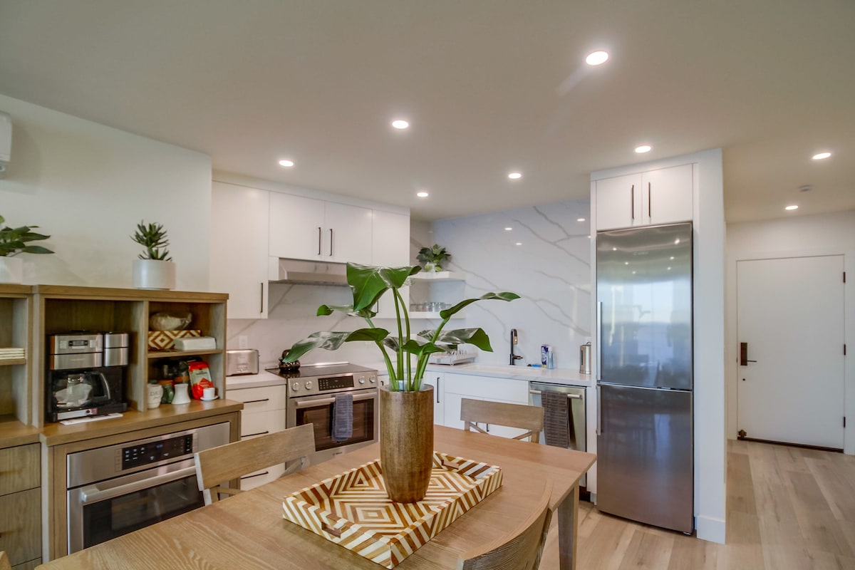 Ubicado en La Jolla Blvd en la zona de Bird Rock de La Jolla. Este espacio de lujo es nuevo en 2021, extremadamente limpio, moderno y espacioso. Esta unidad orientada a la calle tiene vistas a muchas de las boutiques de La Jolla Blvd y otros negocios locales. Tu próxima escapada es lo suficientemente grande como para alojar a una familia de 6 personas. El apartamento está recién amueblado con electrodomésticos de última generación y muchos otros servicios. ¡Increíble terraza en la azotea con vistas al mar compartida con solo otros tres apartamentos residenciales en el edificio!