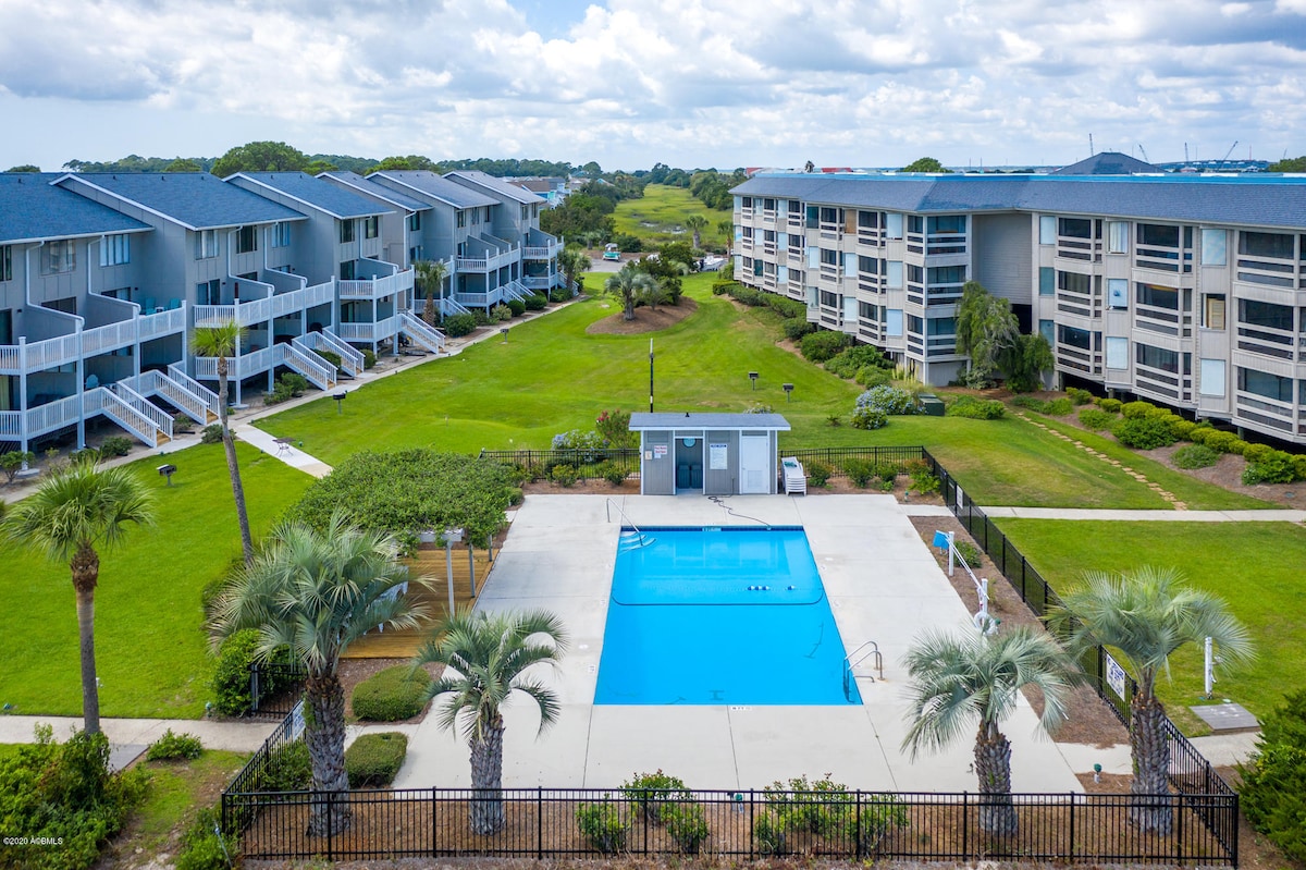¡Disfruta de la exuberante belleza costera del Carolina Lowcountry desde nuestro apartamento de 2 dormitorios y 2,5 baños en Cedar Reef Villas! Observa el resplandor del amanecer en el pantano y el océano sin salir de tu lujosa cama tamaño king. Juega un partido de tenis y luego date un refrescante chapuzón en una de las piscinas del centro vacacional a poca distancia a pie. Pasea hasta la playa a través del acceso al paseo marítimo de Cedar Reef o conduce 3 millas hasta el prístino Parque Estatal de Hunting Island. ¡Termina el día en la cercana Beaufort con una cena romántica y una impresionante puesta de sol en el puerto deportivo!
