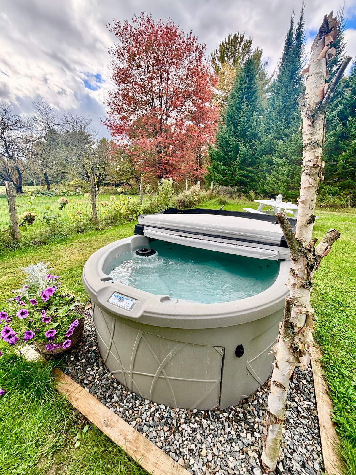 Escápate a nuestra encantadora casita, The Caterpillar House, donde la comodidad se encuentra con la vida minimalista en el pintoresco Elmore, Vermont. Ideal para viajeros solitarios, parejas o familias pequeñas que buscan un refugio tranquilo. Disfruta de un jacuzzi privado, una fogata bajo las estrellas y acceso directo a la pista de motos de nieve, perfecto para escapadas de verano e invierno. Ubicado en nuestra propiedad compartida, este acogedor refugio está rodeado de naturaleza para una estadía verdaderamente relajante.