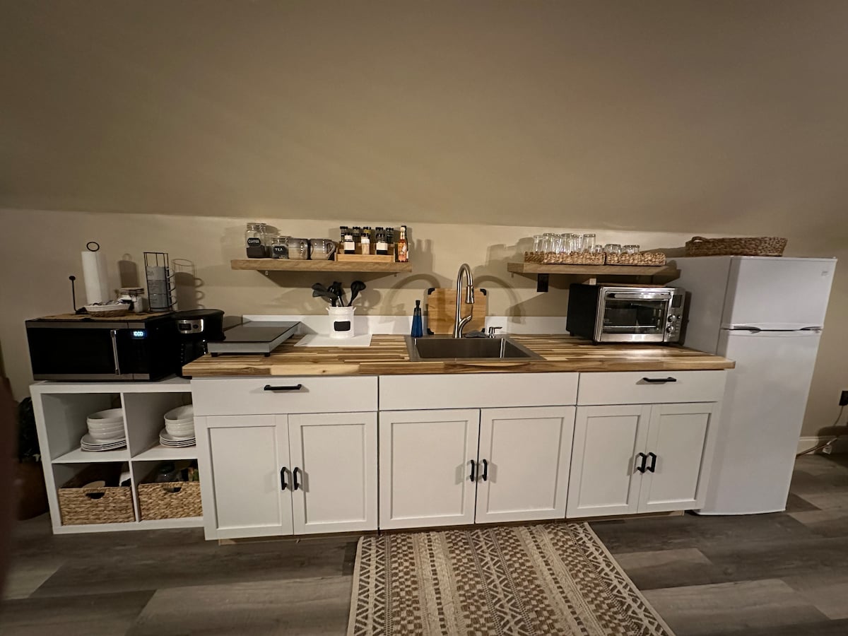 Ubicado en las pintorescas montañas de los Apalaches, este espacioso loft es perfecto para los amantes del aire libre. Con estacionamiento y capacidad para 4-6 personas, es una base ideal para explorar lagos cercanos, senderos fuera de la ley o remolcar a pocos kilómetros de Black Mountain Adventure Park. Disfruta de servicios como una chimenea al aire libre, una cascada y una acogedora sala de estar con un gran televisor. Estaciona tu equipo, relájate junto a la chimenea y relájate cómodamente. Ya sea para la aventura o un refugio tranquilo, este loft bien equipado es un refugio perfecto en la montaña.