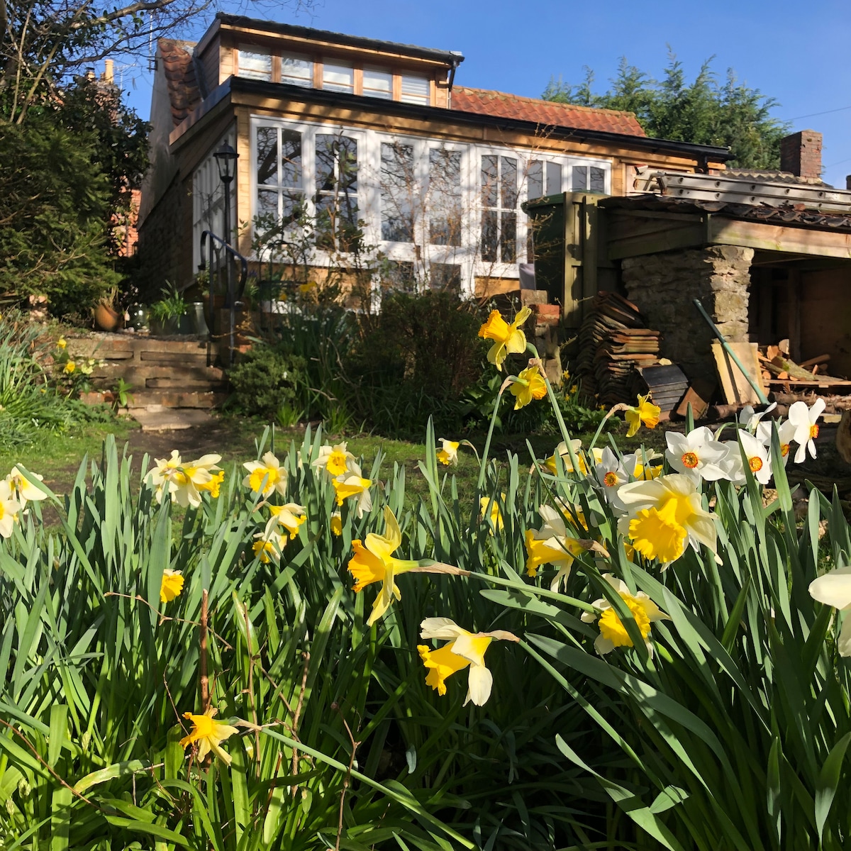 Anexo independiente recién equipado en el corazón del hermoso valle de Belvoir. En la planta baja hay una cocina moderna bien equipada. Arriba hay un gran espacio estilo estudio que es luminoso y espacioso, con un baño con ducha separado. Hay una cama tamaño king y un sofá cama en el que dormiría otro adulto o dos niños. Puerta de escalera, silla alta y cuna de viaje disponibles si es necesario. Aparcamiento en la entrada. También hay mucho espacio para bicicletas. En un bonito pueblo con buenas comodidades y paseos por el campo.