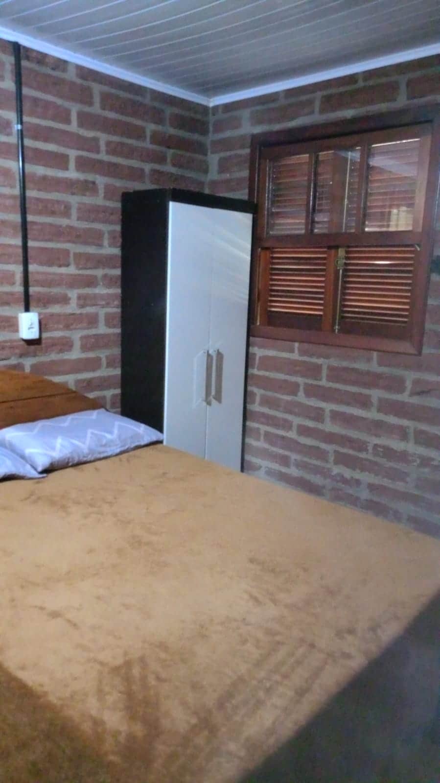 Conta com cama de casal e duas de solteiro, geladeira, ar-condicionado e TV, proporcionando uma estadia agradável após um dia de lazer no pesque e pague ou descanso na acomodação. Obs: acomodação sem cozinha.