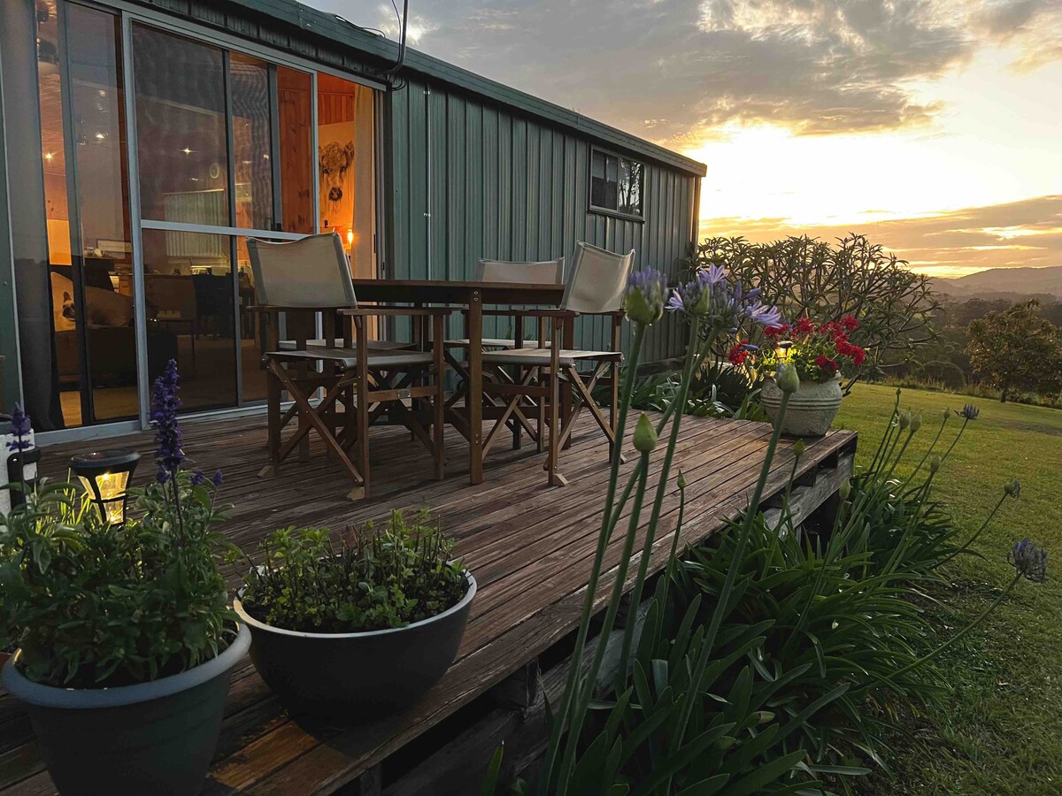 Situado en 48 hermosas hectáreas ondulantes de granja de aficiones. El estudio independiente ofrece un espacio privado moderno, elegante, cálido y cómodo. Internet NBN rápido ilimitado con Netflix. Costa norte media a 2 horas y a 40 minutos al norte de Sídney y a 20 minutos de Blackhead Beach o a 45 minutos de las playas prístinas de Boomerang y Bluey. La estancia incluye un desayuno continental de pan recién horneado casero y mermeladas y granola y algunos huevos reales de corral.