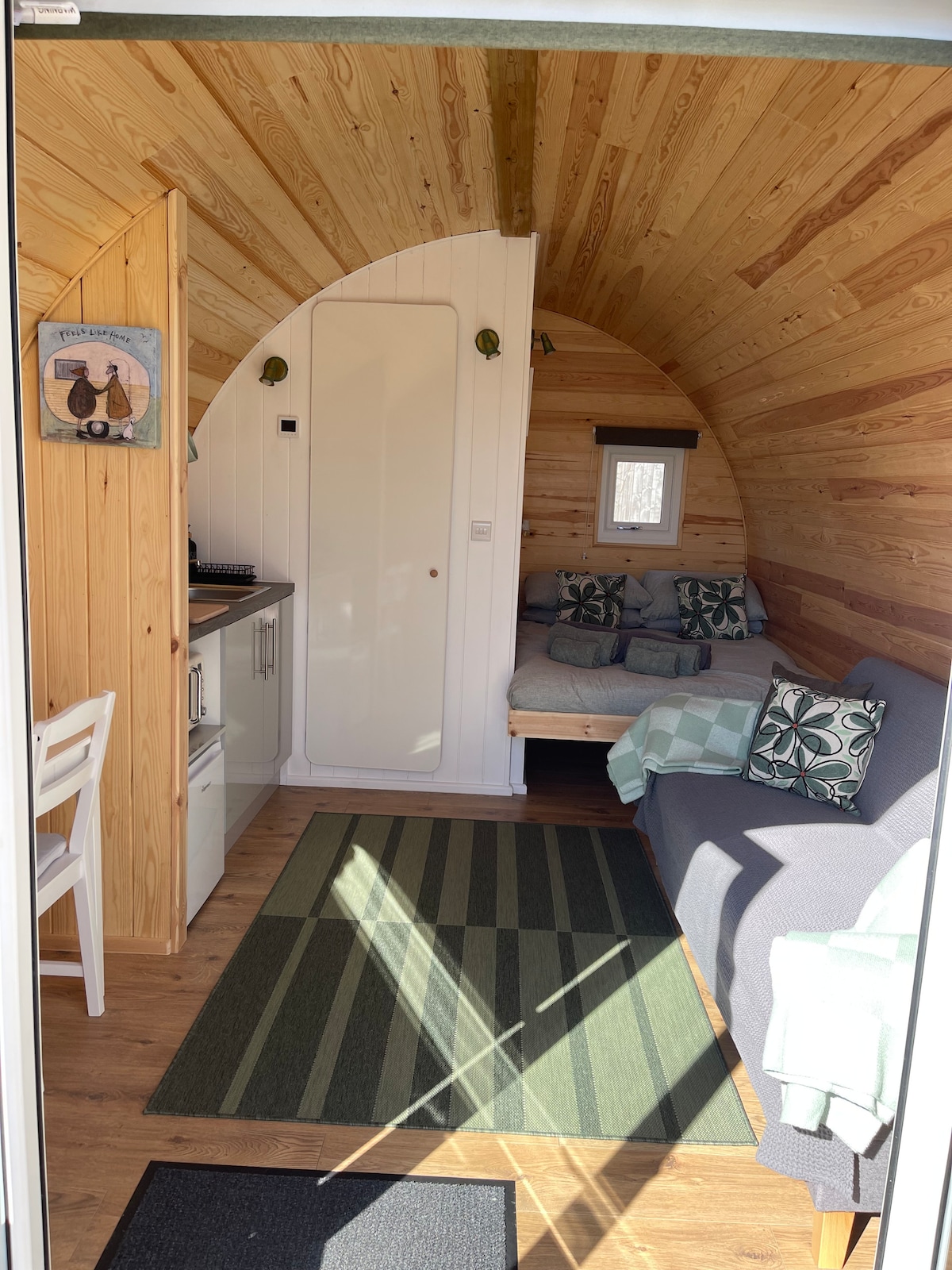 La cápsula de glamping en Hassall Alpacas en Cheshire ofrece una escapada única y acogedora para aquellos que buscan disfrutar de la naturaleza sin sacrificar la comodidad, rodeados de las encantadoras alpacas que deambulan por la granja. Los huéspedes pueden experimentar la tranquilidad de la vida rural mientras disfrutan de comodidades modernas como una cama cómoda, calefacción y jacuzzi de leña. Ya sea que quieras relajarte junto a una fogata o dar un paseo por las alpacas, la cápsula de glamping en Hassall Alpacas promete una estancia inolvidable.
