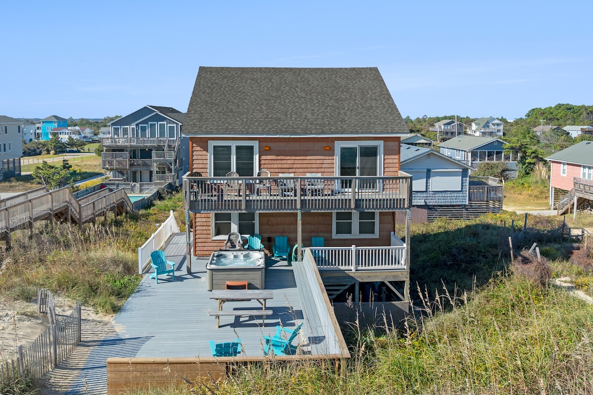 Hi! This is Next To Sea -- a gorgeous, oceanfront Outerbanks beach house with spacious views of the ocean and sound. Designed with guests’ optimum comfort in mind and loaded up on “extras.” Bask in relaxation in this 4-bedroom, 4-bathroom home featuring 3 ocean-facing, en-suite bedrooms, a bunkroom with private deck, and 2 floors of decks. Plus, we've stocked up on top-level amenities, like Vitamix, All Clad, Lenox, Bose, Nikon binoculars, kayaks, toys and more.