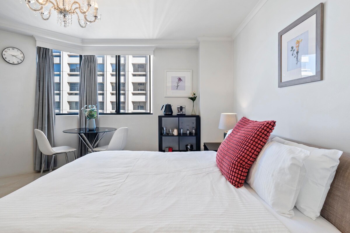 Todos los huéspedes son bienvenidos en nuestro estudio recientemente renovado, configurado a tu manera con una cama tamaño king de lujo Sealy de fabricación australiana o 2 camas individuales extralargas. Disfruta de una ubicación central en el CBD con lo mejor de los restaurantes y tiendas de Sídney justo afuera. Relájate con un televisor inteligente 4K de 65 pulgadas, además de acceso a la piscina y al gimnasio. Limpiaremos personalmente y proporcionaremos sábanas y toallas blancas para cada estadía, manteniendo nuestra tarifa de limpieza baja.