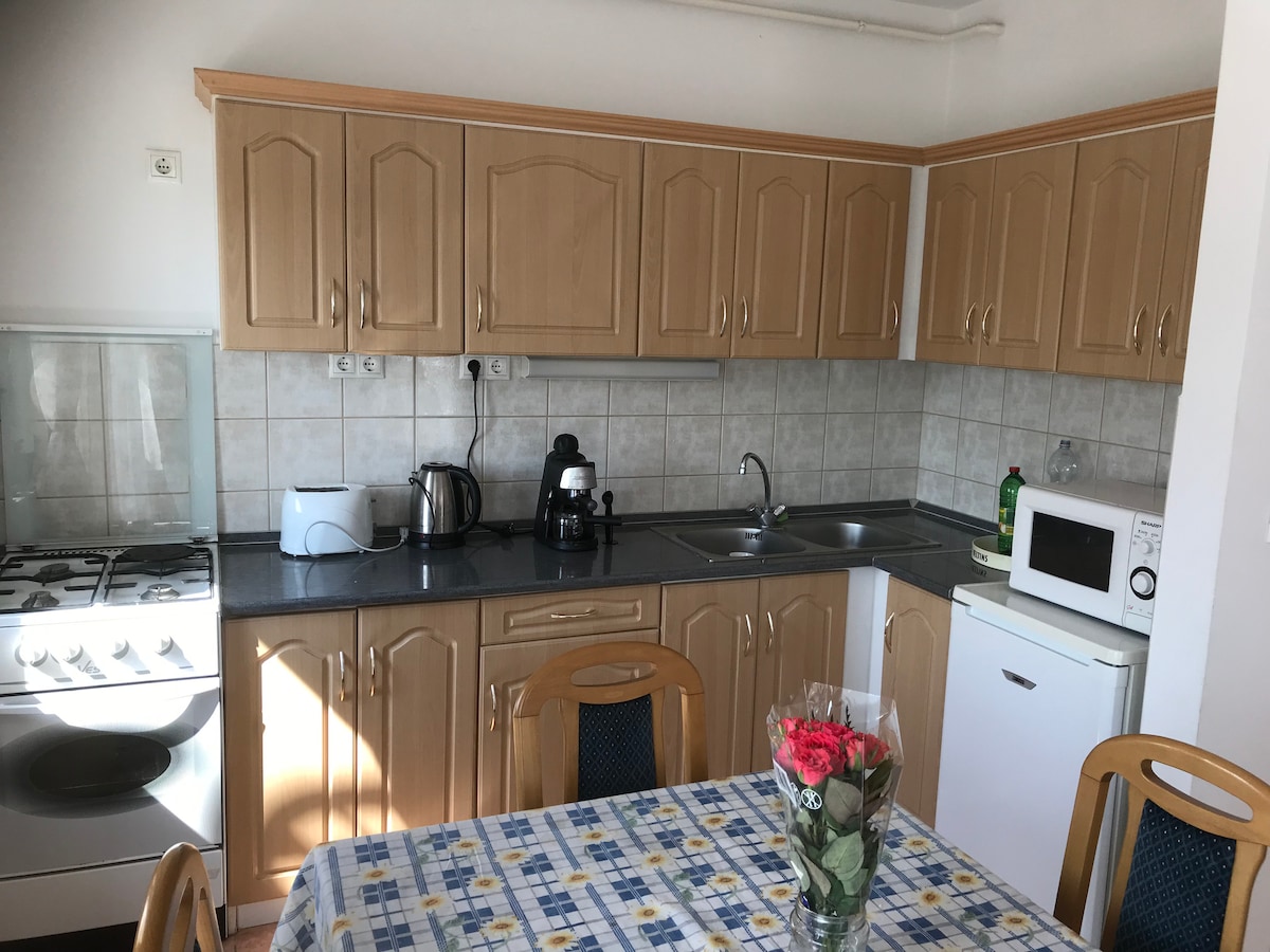 Nuestro renovado apartamento de 32 m2 en la planta baja espera a sus huéspedes a 700 metros del lago, en una zona tranquila. Los restaurantes y tiendas se encuentran a unos 400 metros de distancia. El apartamento estudio tiene una cocina bien equipada y un baño con cabina de ducha. Estacionamiento privado de forma gratuita. Nuestro departamento tiene capacidad para 2+2 personas. Gracias a la ubicación norte del apartamento, es agradablemente fresco en verano y cálido en invierno con calefacción central. Impuesto turístico de HUF 830 por persona y noche, pagadero en el lugar