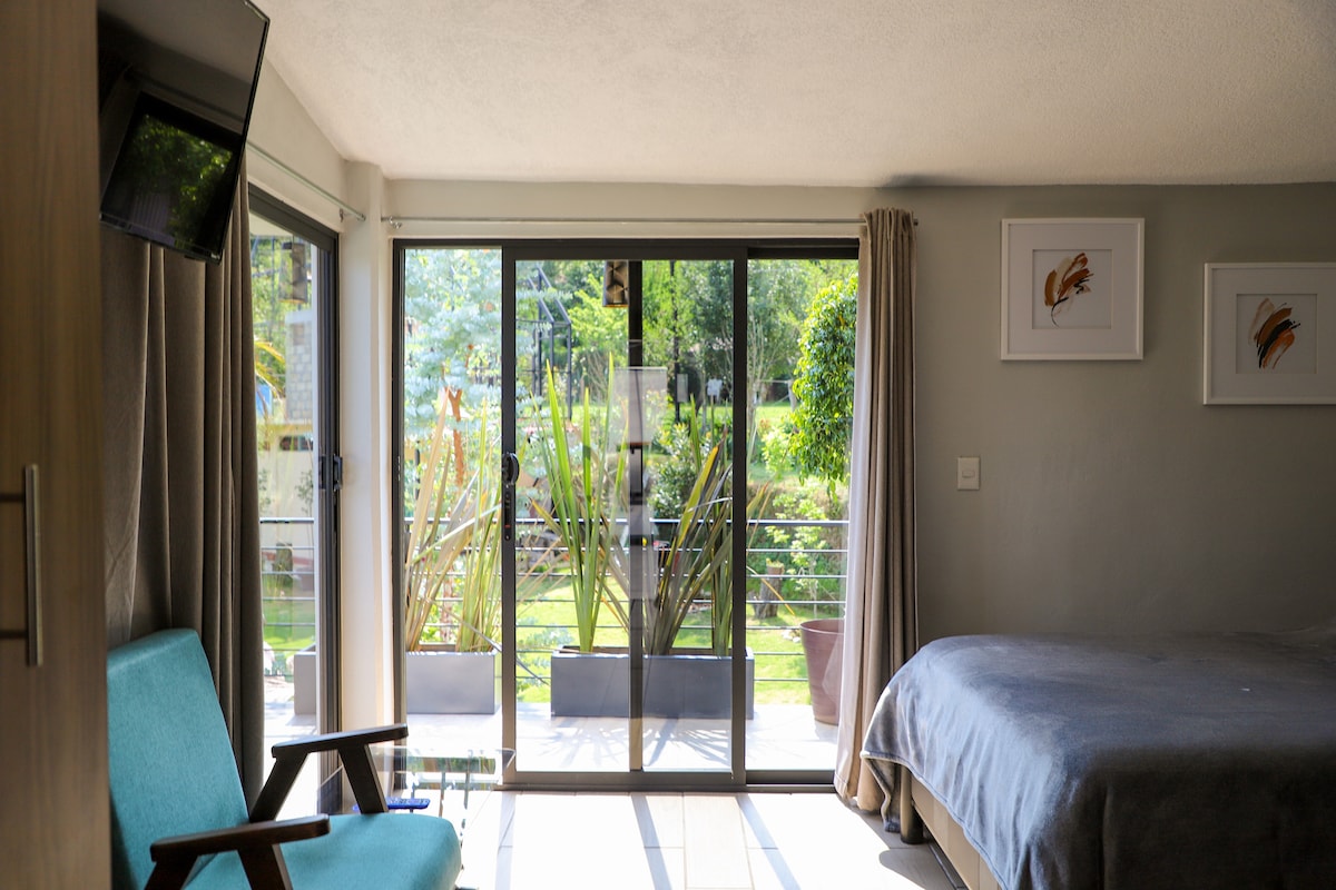 Pequeña Suite cómoda y privada, pensada para parejas que buscan descanso, privacidad y un ambiente tranquilo. Ubicada en una zona residencial segura, es ideal para estancias cortas o fines de semana. Cama queen size con colchón memory foam / cool gel, ropa de cama de algodón de 600 hilos, almohadas cómodas, smart TV, microondas, refrigerador, mesa de trabajo y Wi-Fi. Por ser una zona residencial notarás que no hay ruido de ciudad.