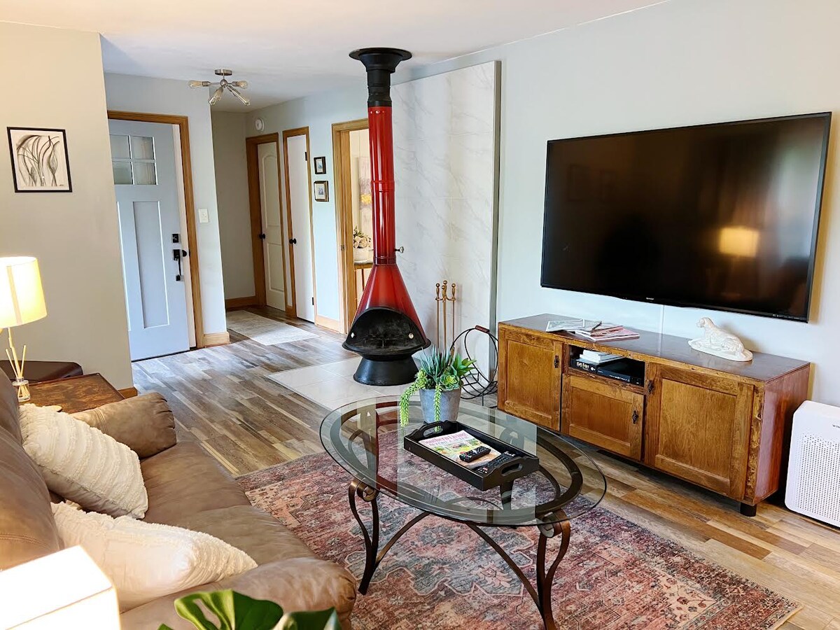 Escápate a este refugio moderno de mediados de siglo céntrico, perfecto para familias y amigos que buscan mayor comodidad y conveniencia. Con más de 2000 pies cuadrados de espacio habitable bellamente renovado, este alojamiento ofrece una estancia acogedora, limpia y elegante. Disfruta de un expreso fresco por la mañana, mantente activo en el espacio de entrenamiento o relájate en la espaciosa terraza, sumergiéndote en la belleza natural, o en el nuevo jacuzzi. La casa, cuidadosamente remodelada en 2024, cuenta con un amplio espacio para todos.