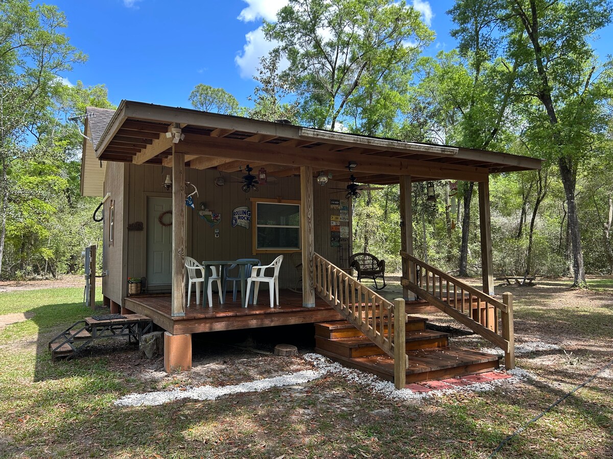 Nueva cabaña temática del oeste Hideaway Cabaña de troncos real hecha por los Amish enclavada entre árboles y vida silvestre (muchos ciervos). A pocos minutos de Ginnie, Ichetucknee, Poe y Blue Springs. A los kayakistas y canoístas les encanta nuestra comodidad para llegar a ríos y manantiales. Fogata y LEÑA GRATIS en el lugar (suficiente para un fuego). Wifi gratuito dentro de la cabaña. Gran propiedad privada con muchos árboles. Relájate en el porche o alrededor del fuego y crea recuerdos increíbles en tu cabaña de troncos privada. Esta es una cabaña sin mascotas.