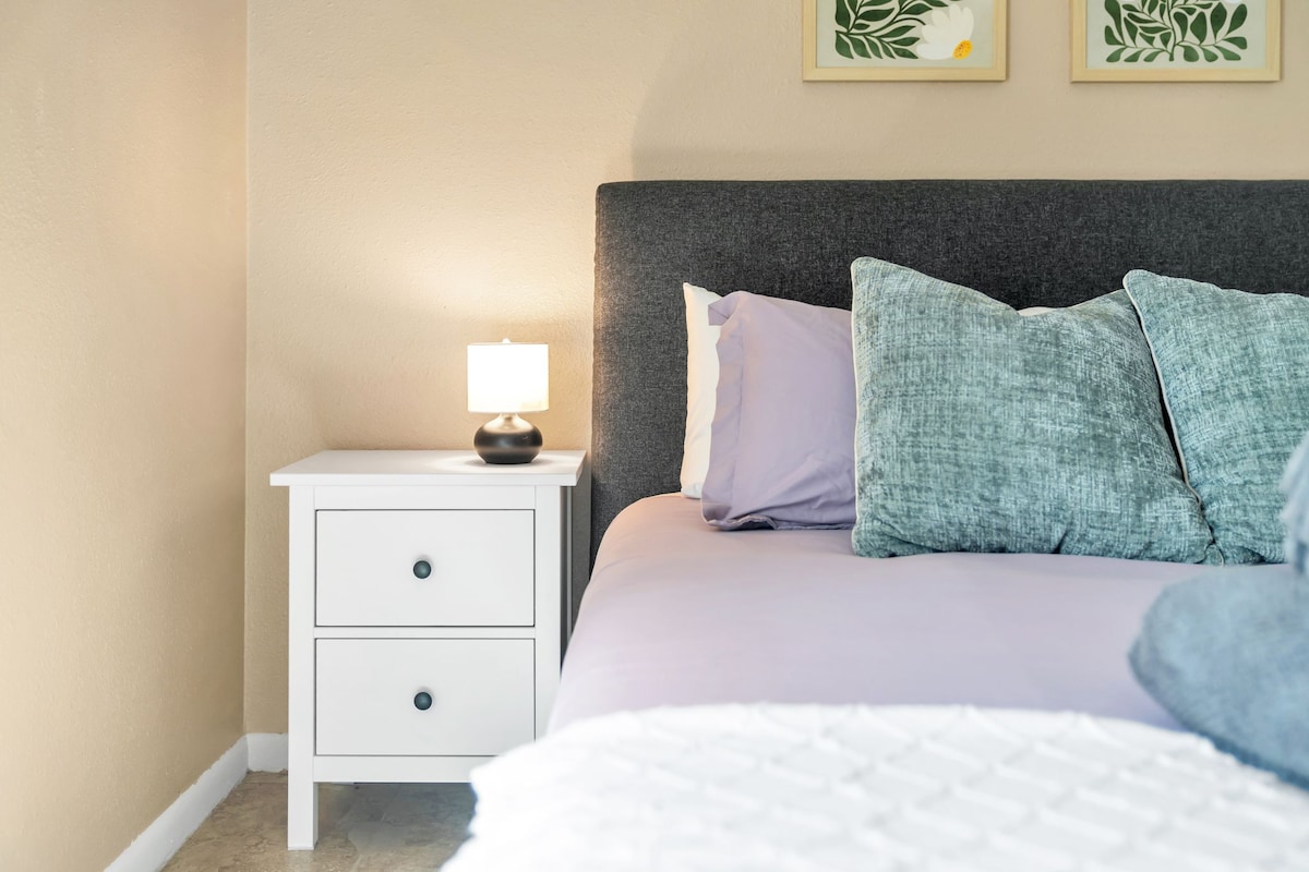 Disfruta de una estancia cómoda y totalmente privada con tu propia entrada independiente. La suite incluye: Baño completo privado con toallas, champú, acondicionador y gel de baño. Cocina totalmente equipada con nevera, congelador, microondas, Keurig y todos los utensilios de cocina básicos. Acogedor dormitorio con una cama tamaño queen, TV inteligente, decoración elegante, mesas auxiliares con lámparas de noche y amplio espacio en el armario. Estacionamiento exclusivo incluido ¡Todo lo que necesitas para una estancia cómoda y relajante está aquí!