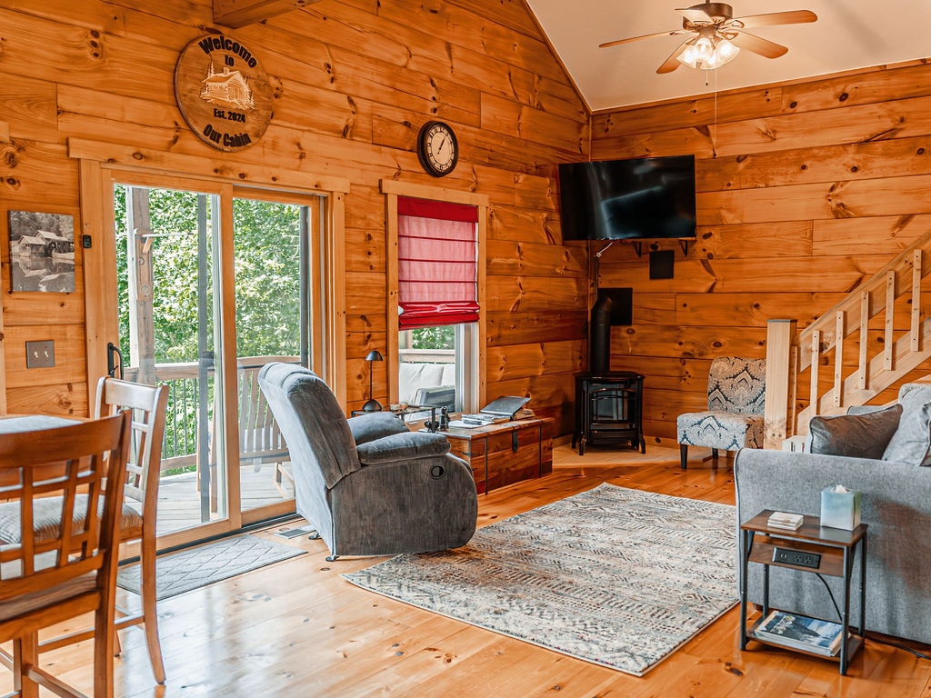 Whispering Woods Cabin ofrece una rara mezcla de aislamiento y comodidad, proporcionando el refugio perfecto para tu espíritu. Rodeada de árboles y una suave brisa de montaña, esta cabaña es un refugio donde el estrés se desvanece. Disfruta del ambiente tranquilo, acurrúcate junto a la chimenea o disfruta de tu serie favorita. ¡Ofrecemos internet de alta velocidad! Aunque está ubicada en un lugar privado, la cabaña está a solo 15 minutos en coche de la I-77, lo que ofrece una verdadera comodidad para comer e ir de compras. Accesible para personas con discapacidad. ¡Reserva ahora!