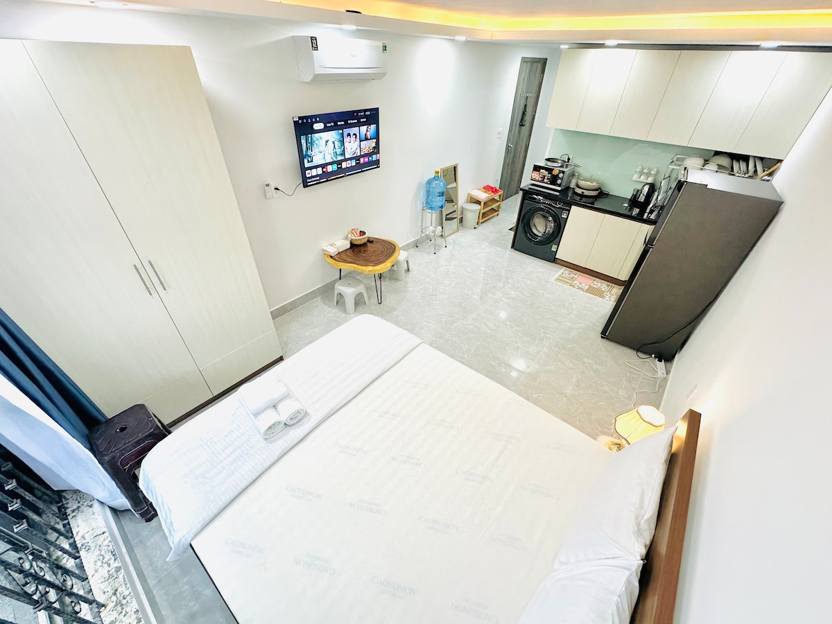 Establecidos en 2023, ofrecemos apartamentos con servicios de alta calidad para estancias cortas y largas ubicados justo en una calle concurrida con famosas cafeterías, restaurantes, Circle K y tiendas de comestibles cerca y a solo unos minutos a pie de la calle peatonal Bui Vien y del parque Tao Dan. Rentables en comparación con los hoteles, ofrecemos apartamentos de 1 dormitorio con servicios, privacidad, estilo moderno, cocina, balcón, puertas y ventanas insonorizadas, espacio de escritorio para trabajar, jardín en la azotea, ascensor, limpieza regular y las comodidades de un «hogar lejos del hogar».