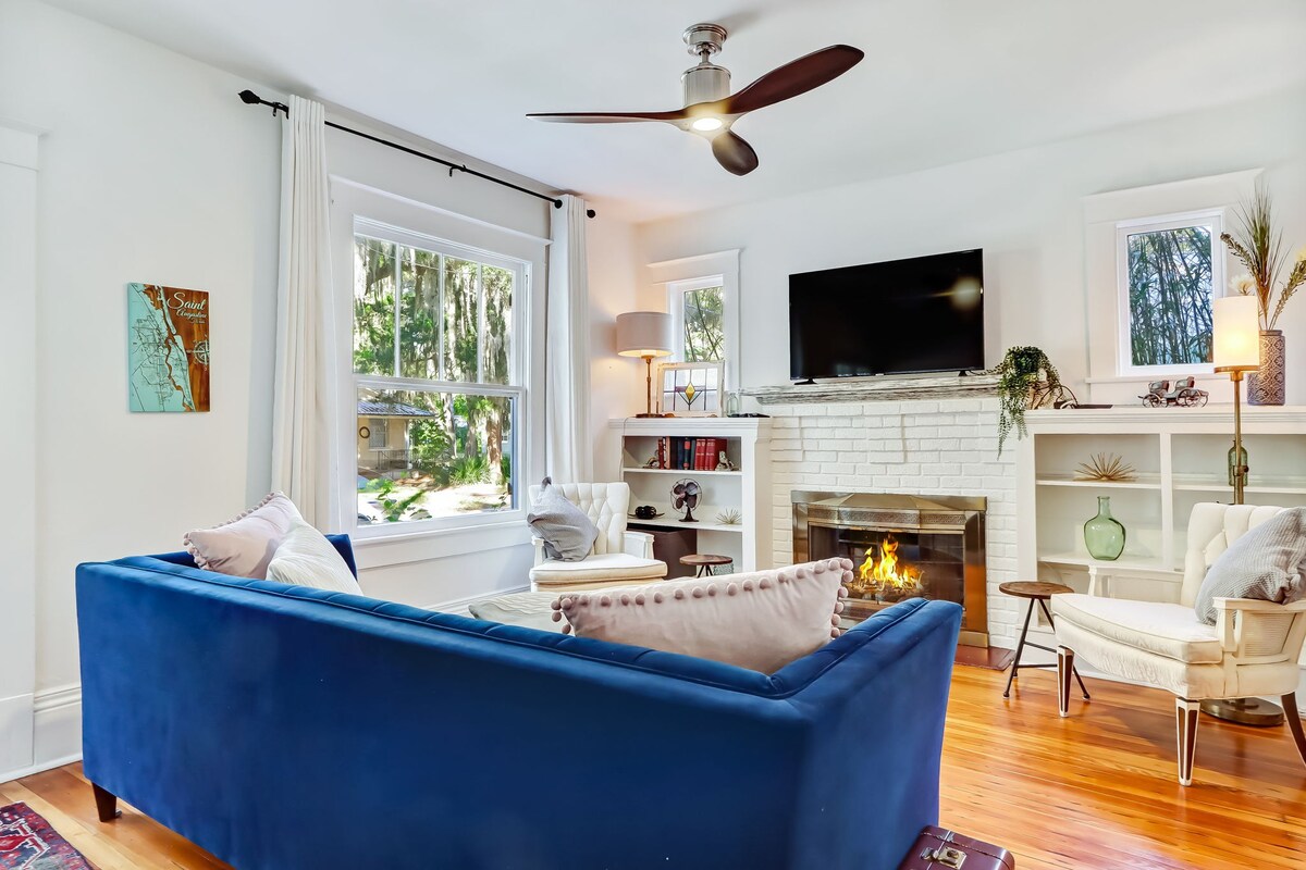 Estarás a una cuadra de las tiendas, restaurantes y atracciones del centro histórico de Saint Augustine. Disfruta de televisores inteligentes, ropa de cama de lujo con cortinas opacas en los dormitorios, porche con pantalla, terraza trasera, cabaña de baño con ducha al aire libre/bañera con patas, fogata a gas y parrilla Weber, sala de juegos con dardos, futbolín, manualidades y más. Acogedora, limpia y relajante. Fabulosa cocina totalmente equipada, patio trasero totalmente cercado, estacionamiento fuera de la calle, entrada pavimentada cerca del centro de la ciudad y excelentes playas. ¡Ubicación privilegiada!