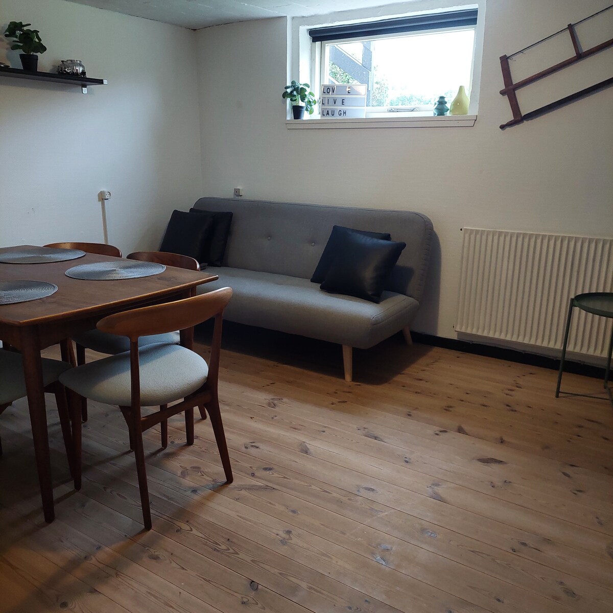 Tendrá su propia entrada privada a un apartamento en el sótano, luminoso y espacioso, de unos 85 m², con salón, dormitorio, cocina y baño. No hay espacios comunes con el propietario: tienes todo el apartamento para ti. A solo 9 km de la autopista E39 A 10 minutos en coche del Mar del Norte (Tversted) A 15 minutos en coche de Hjørring, Frederikshavn y Hirtshals La ciudad tiene dos grandes supermercados y una de las mejores panaderías de la región. La ropa de cama, las toallas y todo lo demás están incluidos en el precio, que se paga a través de Airbnb.