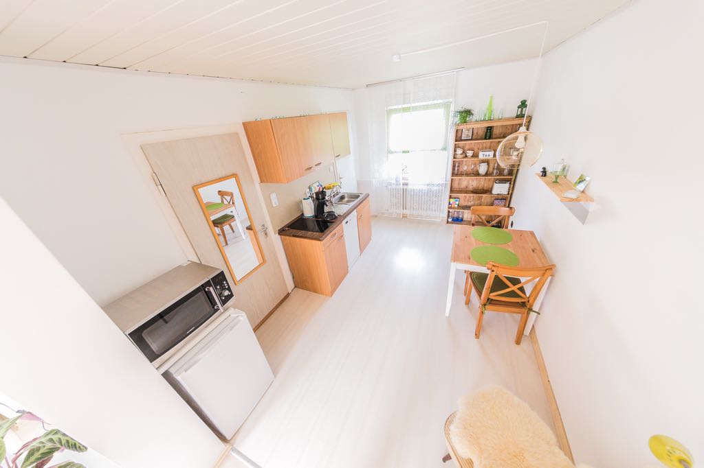 El apartamento 1 tiene 30 m2 y ha sido completamente renovado en el verano de 2016. Una pequeña cocina está totalmente amueblada con lavavajillas, hornillas, microondas, así como una cafetera Senseo. No hay lavandería en este apartamento. El espacio habitable lleno de luz es moderno y está amueblado con amor. Un acogedor sofá te invita a relajarte y dormir bien en la cama doble (ancho 140 cm). Wifi gratuito. Buena ubicación (15 minutos a la estación de tren de Colonia Messe/Deutz).
