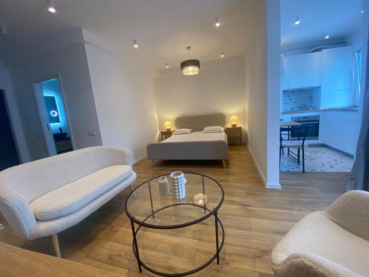 ¡Bienvenido a nuestro nuevo apartamento de un dormitorio en Cluj Napoca, a solo 2 km del centro de la ciudad! Perfecto para viajeros solos, parejas o grupos pequeños, este elegante espacio cuenta con una cómoda cama doble, un sofá expandible, una cocina totalmente equipada, Smart TV con cable y Netflix y un baño bellamente amueblado. Ven a disfrutar de una taza de café en la casa mientras contemplas los tranquilos alrededores desde la terraza. Aparcamiento privado y registro autónomo incluidos. ¡Estamos deseando recibirte!