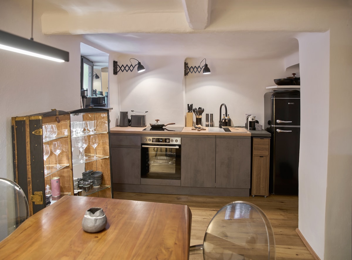 La tradición y el moderno ofrecen un confort de vida exclusivo. Situado en uno de los lugares más bonitos de Retz, a 1 minuto del centro. Individualidad a través de un patio aislado/terraza con vistas a la torre del ayuntamiento. Inodoro separado, cocina totalmente equipada con lavavajillas Miele, máquina Nespresso, piscina al aire libre cercana
