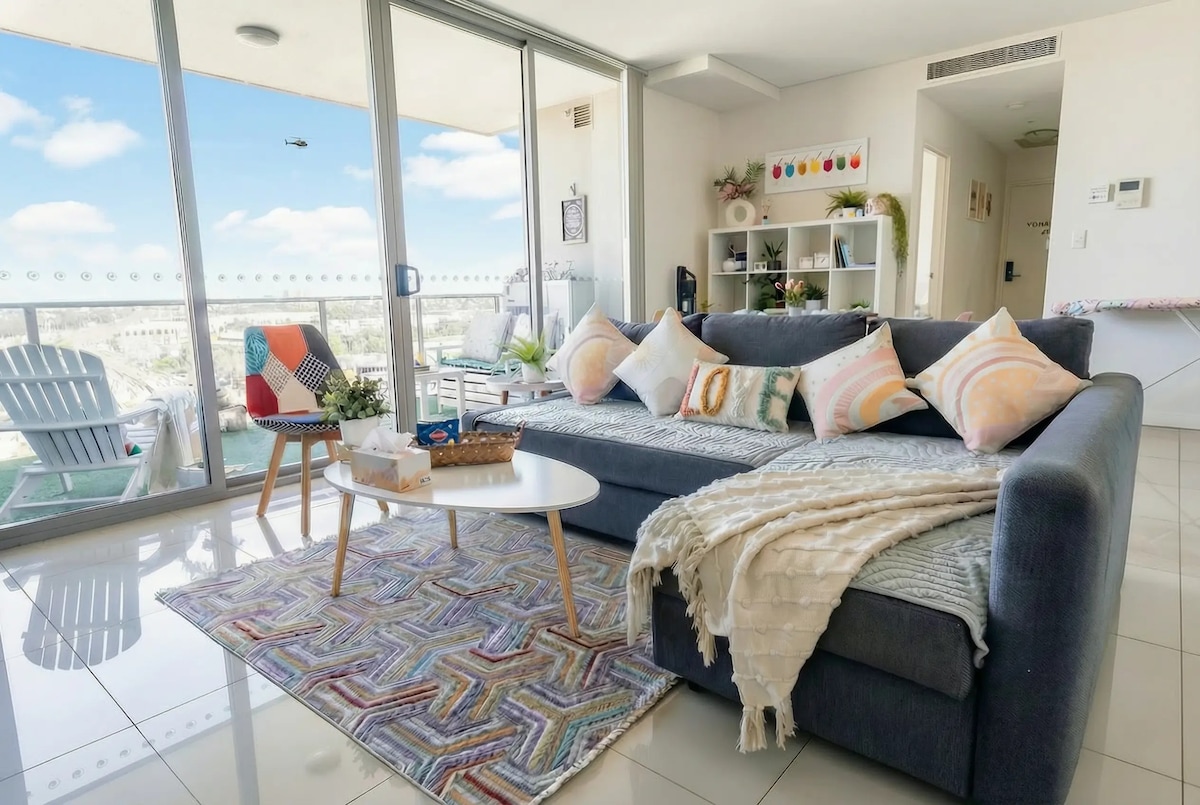 Precioso baño de 2 camas y 2 baños con vistas a la ciudad, estacionamiento gratuito