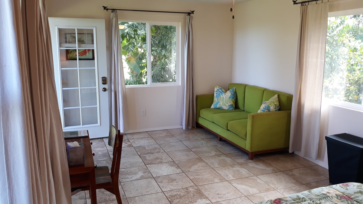 Close to many major attractions yet short drive to downtown Hilo. You’ll love the comfortable space, the peaceful yet convenient location, the lush yard, even access to swimming & waterfalls in the gorge behind the house. The studio is good for couples, solo adventurers, and business travelers. NOTE: Hawaii GE-067-950-7968-02 & TA-067-950-7968-01 The rental is hosted & per Hawaii County Planning Dept exempt from Hawaii Cty Bill 108 so we may consider <30 day rentals as well as longer periods.