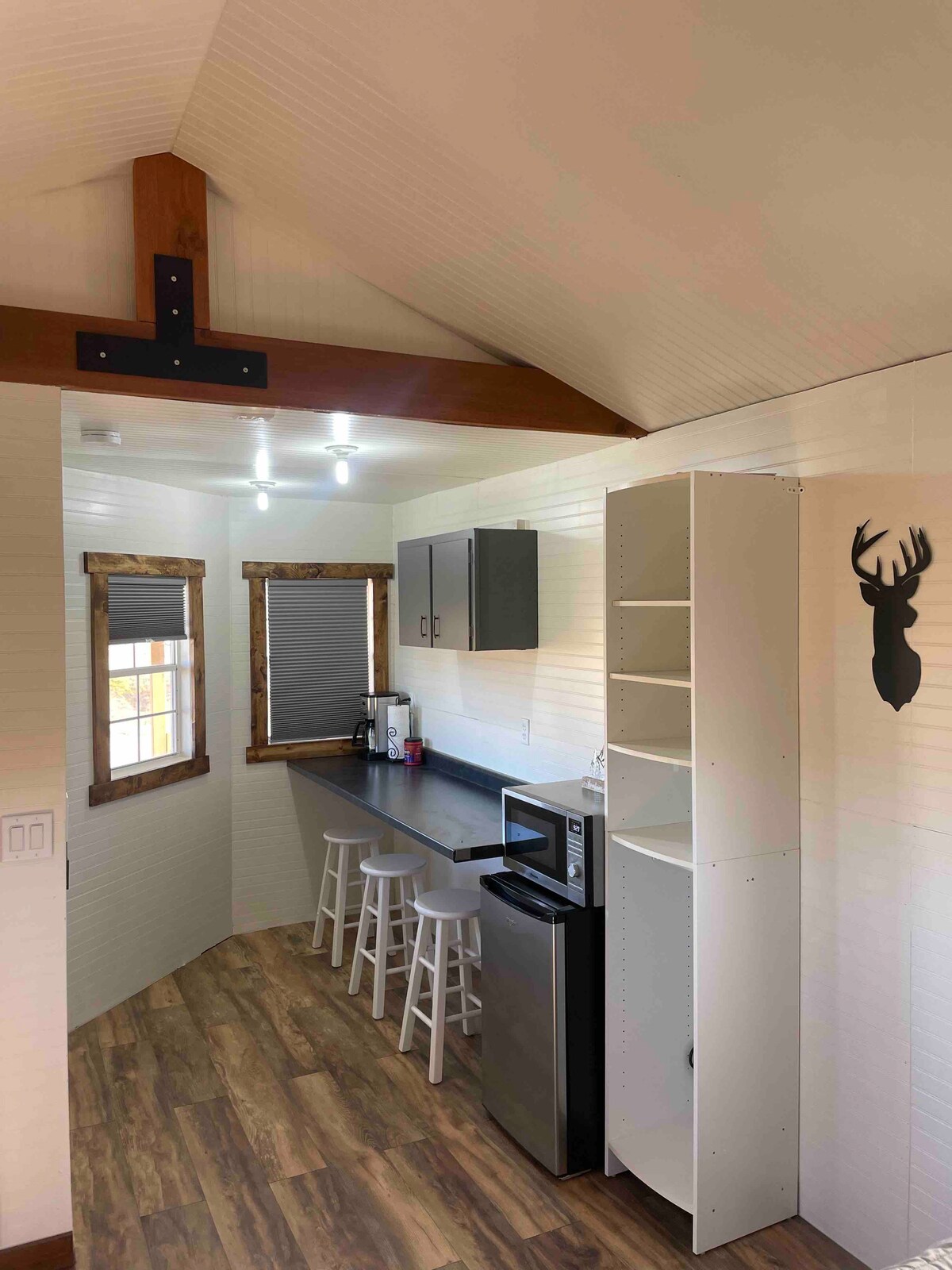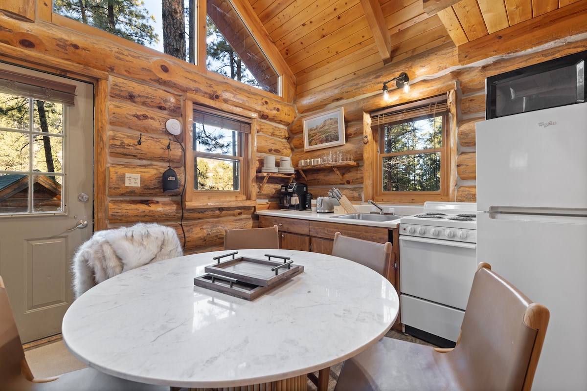 La cabaña Notch forma parte de Hinterwood Inn & Cabins, situada a 60 pies del bosque nacional. ¡Disfruta de caminatas y avistamientos de vida silvestre desde tu puerta principal! La cabaña tiene 2 dormitorios, cada uno con una cama tamaño queen, una cama tamaño queen en la sala de estar, un baño con ducha (sin bañera) y una cocina del tamaño de un apartamento con elementos básicos. Construido a medida por los propietarios, disfruta de la hermosa pared decorativa de madera, la mesa de losa de pino y los techos abovedados. Incluye una terraza privada con parrilla de gas, zona de fogata privada y mucho más.