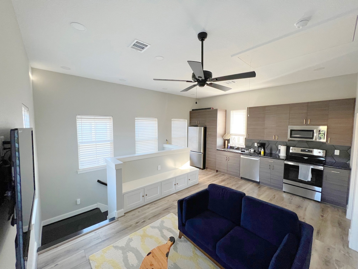 Destacada en el 2026 Heights Home Tour: la magia te espera en las calles arboladas de esta casa de huéspedes de estilo artesanal de dos pisos, magníficamente rediseñada. Este espacioso refugio privado de 93 metros cuadrados (1,000 pies cuadrados) cuenta con una cocina renovada, 2 baños y un espacio cómodo para un máximo de 4 huéspedes. Ubicado en el corazón de Woodland Heights, a poca distancia a pie de parques, cafeterías y los restaurantes locales más populares. A solo 3 km del centro de la ciudad y a minutos del Baptist Health Medical Center: una combinación ideal de encanto atemporal, privacidad y comodidad.