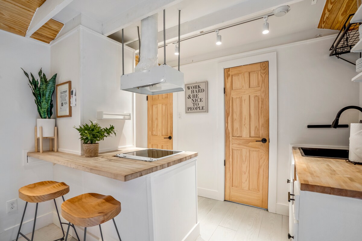 ¡Ven a experimentar lo mejor que Houston tiene para ofrecer en nuestra adorable casita de campo en el histórico Houston Heights! Nuestra pequeña casa del patio trasero combina a la perfección el encanto vintage con la comodidad contemporánea. Sala de estar de concepto abierto, cocina elegante y un acogedor dormitorio tipo loft. Con una puntuación de más de 80 en cuanto a accesibilidad, los huéspedes pueden caminar fácilmente a una gran cantidad de cafeterías, boutiques y parques. Este espacio es perfecto para viajeros de negocios, parejas y exploradores solitarios que buscan un refugio acogedor en un barrio histórico y vibrante.