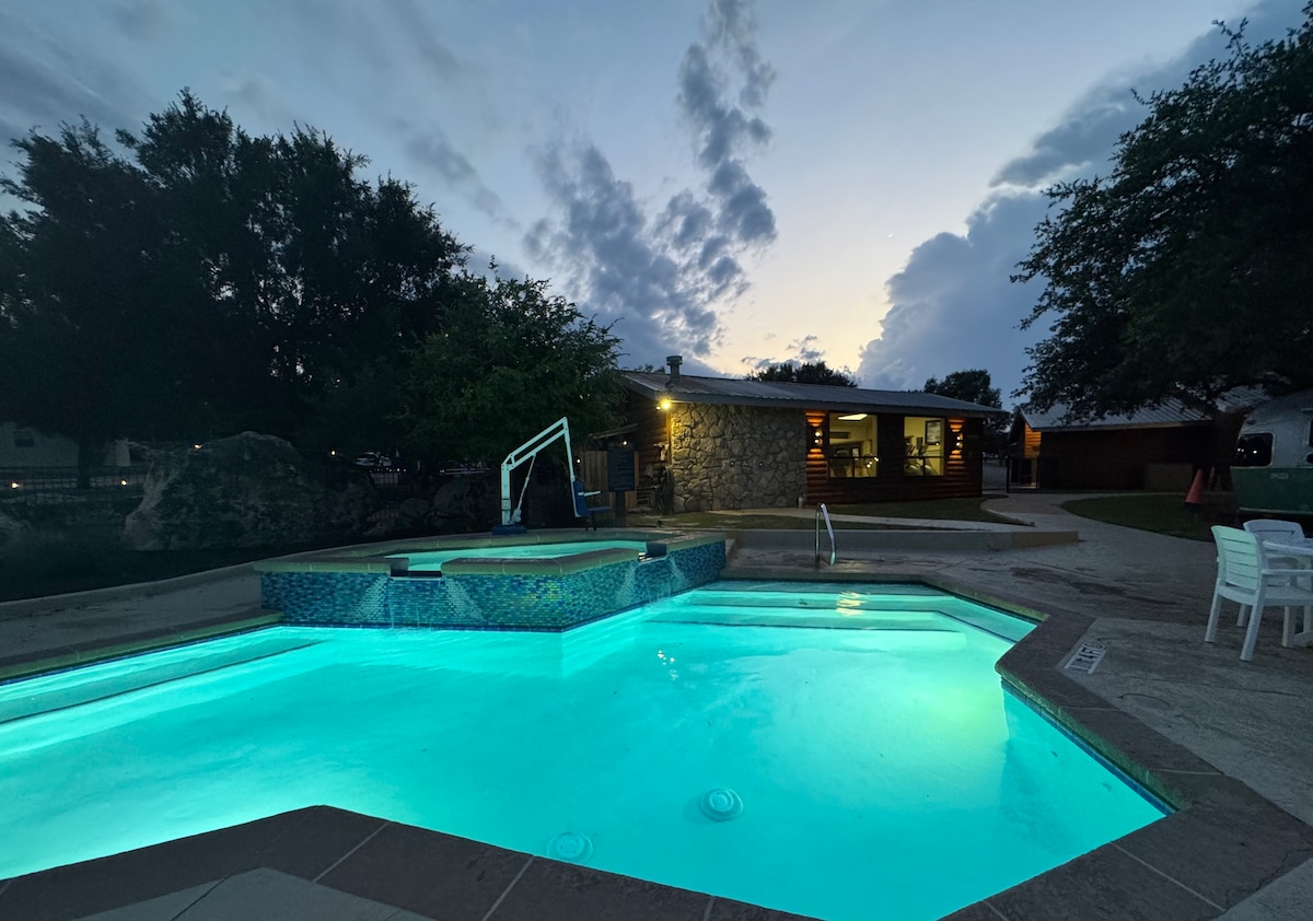 Calificación promedio: 5 de 5; 120 evaluacionesRetiro con puerta amarilla, piscinas, jacuzzi y lago Travis