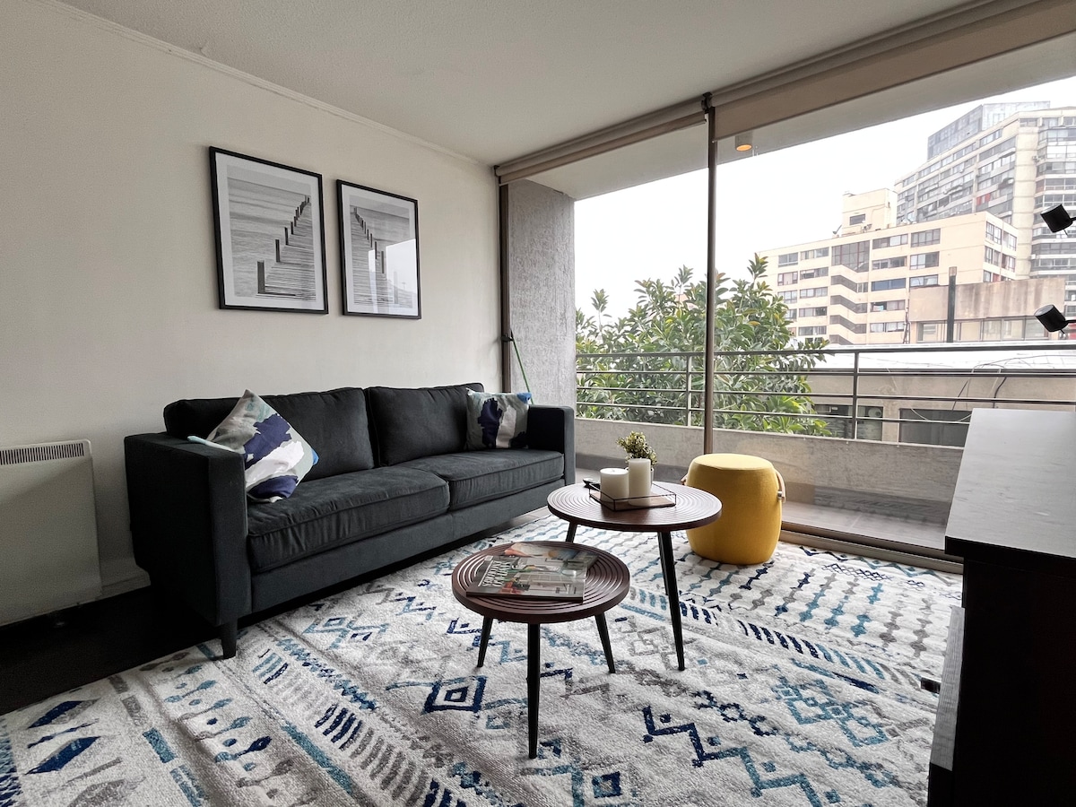El departamento cuenta con una ubicación inmejorable en el corazón de Providencia, a pasos del centro comercial "Costanera Center", y a solo dos cuadras del Metro Los Leones. El lugar está rodeado de restaurantes, teatros, pubs, cafés, farmacias, librerías y salas de arte. Se ubica frente al Parque de las Esculturas, el que conecta con una ciclovía con el centro de Santiago a través del Parque Balmaceda y Forestal. El estacionamiento, opcional, tiene un valor adicional de $8.000 por noche.