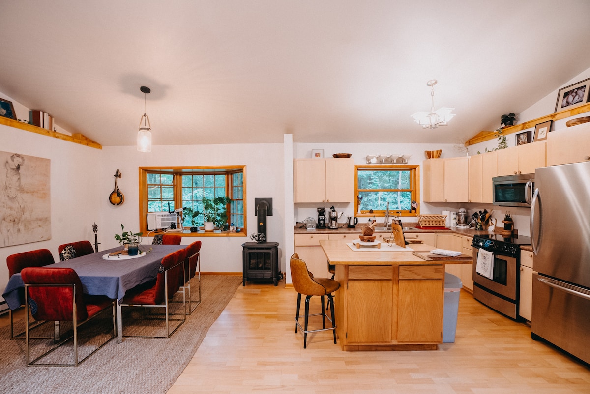 Tu santuario creativo: una tranquila cabaña de 2 camas en 6 acres privados de bosque. Está diseñado para ayudarte a desconectar. En lugar de televisión, encuentra materiales de arte e instrumentos esperando tu imaginación. Reproduce discos en el altavoz de vinilo/bluetooth. Leer junto a la chimenea. Deja que la cocina inspire tu horneado. Explora el lago Huron o practica senderismo y observación de aves en el parque estatal Port Crescent. Las noches traen la observación de estrellas del bosque. En la relajación final, mejora tu estancia alquilando la sauna móvil. Envíanos un mensaje cuando tu creatividad alcance su punto máximo.