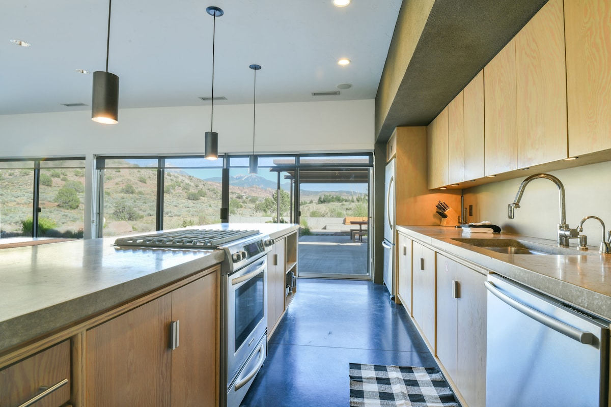 ¡Te damos la bienvenida a nuestro oasis aislado en la ladera de una colina! Situado fuera de la ciudad en un barrio tranquilo, el Aerie Loft ofrece un estudio de estilo hotelero envuelto en unas vistas panorámicas absolutamente impresionantes. Se encuentra en una ladera orientada al sur sobre el encantador valle de Moab, a 3 millas al sur de la ciudad. Estamos en una ladera, ¡así que los amaneceres y puestas de sol son increíbles! El «Aerie Loft» ofrece una cochera cubierta que está situada arriba para relajarse al aire libre, juguetear con el equipo y una zona de jardín al aire libre para hacer barbacoas.