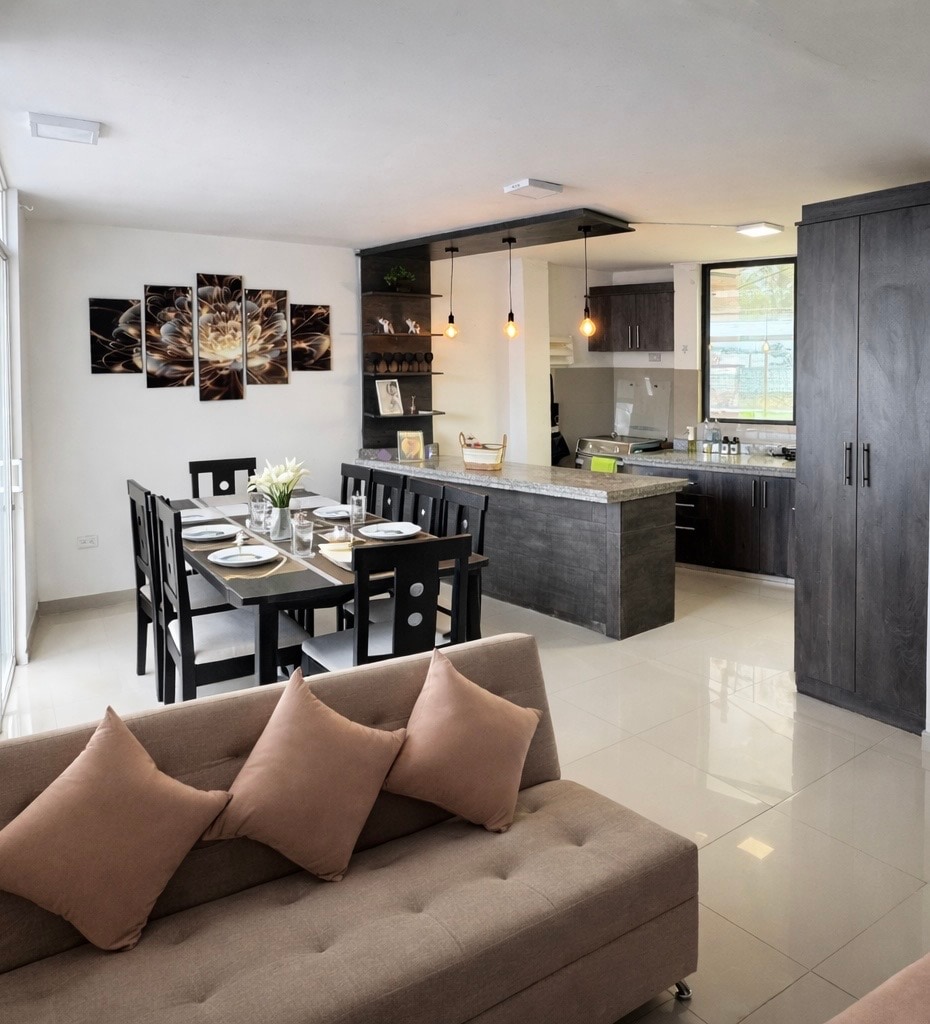 🏠 Comodidad Total en Atuntaqui (Cerca de Panamericana) Relájate en un refugio tranquilo y seguro a 1.5 km del centro de Atuntaqui. Ubicación Clave: A solo 3 cuadras de la Panamericana; acceso fácil a Ibarra/Otavalo y parking gratuito. Servicios Top: Cocina Completa (Horno, Cafetera, Batidora). Lavandería (Lavadora, Plancha). Trabajo y Ocio: WiFi rápido, TV, Zona para trabajar. Seguridad: Cámaras exteriores. Flexibilidad: Admitimos mascotas.