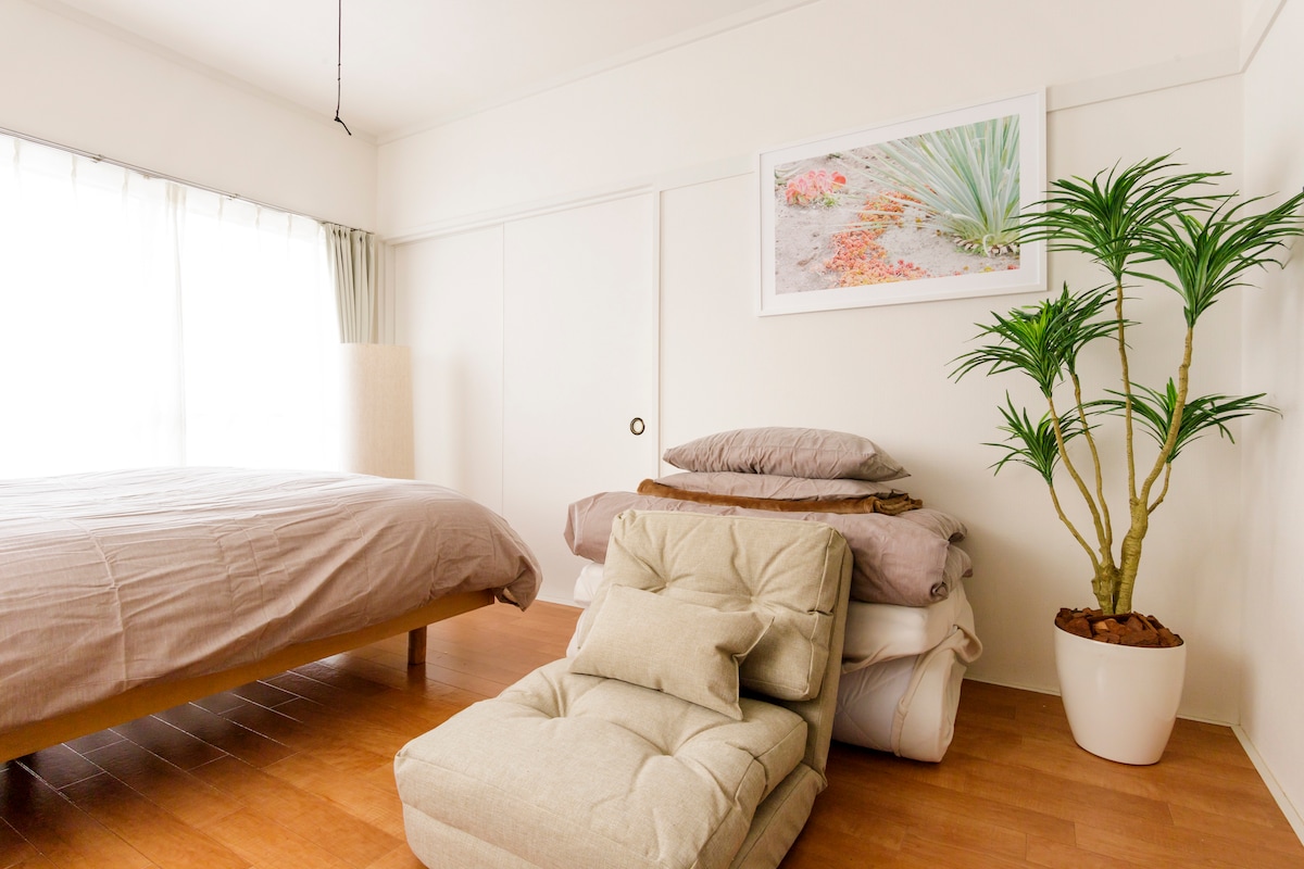 5 mins walk/50㎡/2BR, wooden Japandi private suite