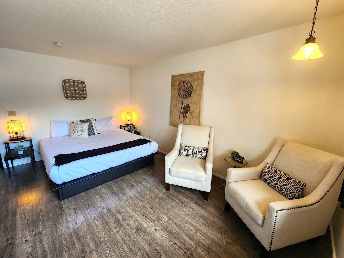Explora Pine Sisk Inn, un apartamento privado entero de 1 dormitorio que está a poca distancia del centro de Leavenworth. Totalmente amueblado con una cocina equipada, una cómoda cama tamaño queen, un baño de 3/4 y una sala de estar con un televisor de pantalla grande. También hay un colchón de tamaño completo desplegable de 4". Tendrás una entrada privada a un refugio tranquilo a pocos pasos del vibrante centro de la ciudad. ¡No tendrás que competir por el estacionamiento! Como dijo un huésped: «¡Me sentí como un habitante más!».