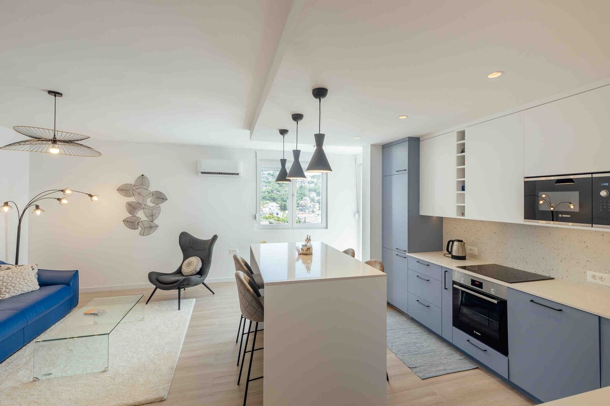 ¡Bienvenido a Tamaris, un acogedor apartamento en el paseo marítimo! 🌊 Disfruta de las impresionantes vistas a la bahía a través de la pared de cristal del salón, donde el sofá se convierte en una cómoda cama. La cocina moderna está totalmente equipada para estancias más largas, y el lujoso baño con ducha de efecto lluvia ofrece un retiro similar a un spa. Reformado en 2022, combina estilo y comodidad. Nota: En julio y agosto, la animada vida nocturna y el ruido nocturno lo hacen ideal para los huéspedes más jóvenes que disfrutan del ambiente animado del verano. 🎉