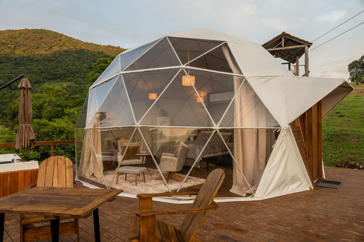 Bienvenido a Depois do Horizonte, un espacio diseñado para brindar una experiencia de alojamiento única en contacto directo con la naturaleza, preservando su comodidad y conveniencia. Situado a 35 minutos de Gramado/RS, dentro del Brasil Raft Park, en Três Coroas/RS, te sorprenderá la posibilidad de pasar la noche en una cúpula geodésica totalmente estructurada para que puedas observar los matices de la naturaleza local, con una vista privada impresionante.