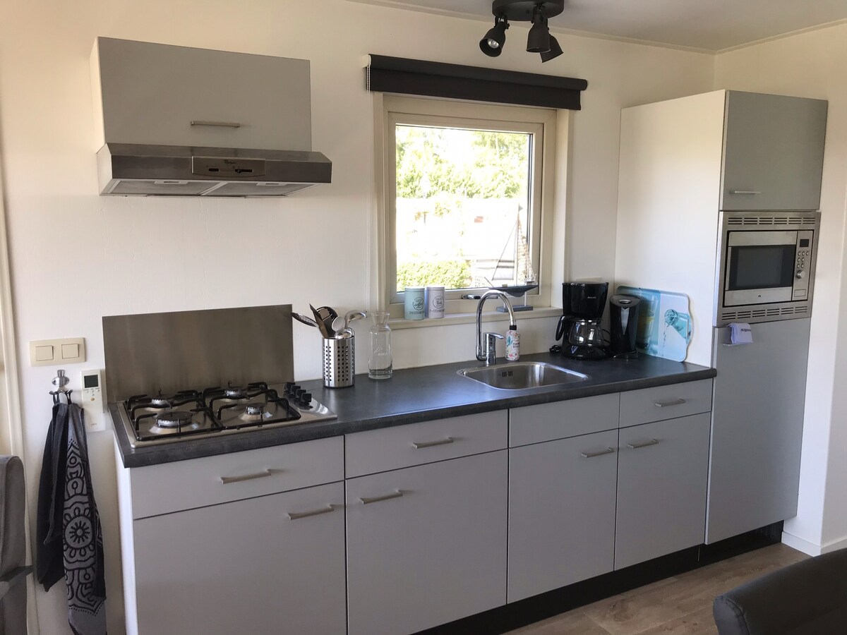 Bonito chalet en un lugar espacioso en el camping de playa con vistas al lago Sneekermeer. El chalet tiene un dormitorio con un somier doble y un dormitorio con una litera (80x200 cm). El chalet tiene una caseta de jardín con cerradura donde se pueden guardar las bicicletas. Hay una bicicleta de mujer y una de hombre. Hay una Senseo en la cocina. En la foto hay una cafetera. Si prefiere utilizar la cafetera, háganoslo saber.