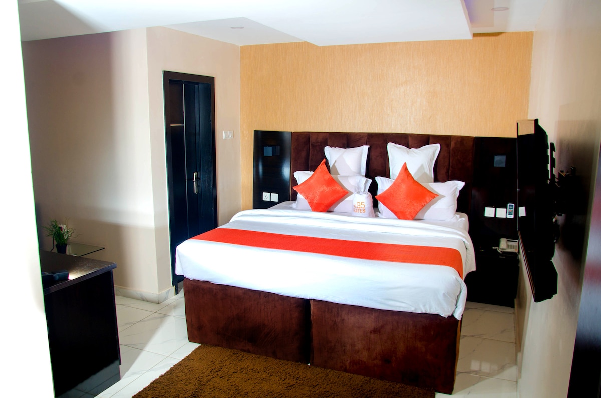 Welcome to Romeneo Grand Royal Hotel. Enjoy a relaxing stay, perfectly located just 7 minutes from Lagos International Airport. Our beautifully furnished rooms feature: Comfortable beds Ensuite bathrooms Air conditioning High-speed Wi-Fi Guests also enjoy access to premium amenities including: Relaxing spa Refreshing swimming pool On-site restaurant serving local and continental meals Cozy bar & lounge Complimentary breakfast