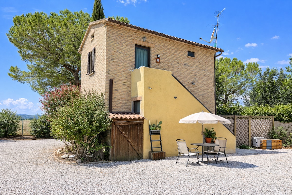 Casa de campo que ofrece momentos de tranquilidad en un ambiente sereno, producimos vino DOC y aceite de oliva virgen extra. Las Marcas están llenas de maravillas que nos regala la Madre Naturaleza: el mar, las montañas, los valles salpicados de ríos, las gargantas y los pasos naturales de los Apeninos, o construidos por la sabiduría de artistas de renombre. Pero las obras creadas por la sencilla mano del agricultor no desfiguran el paisaje que se abre ante tus ojos. «...que el paseo sea ligero para ti, viajero, y el corazón, ligero».