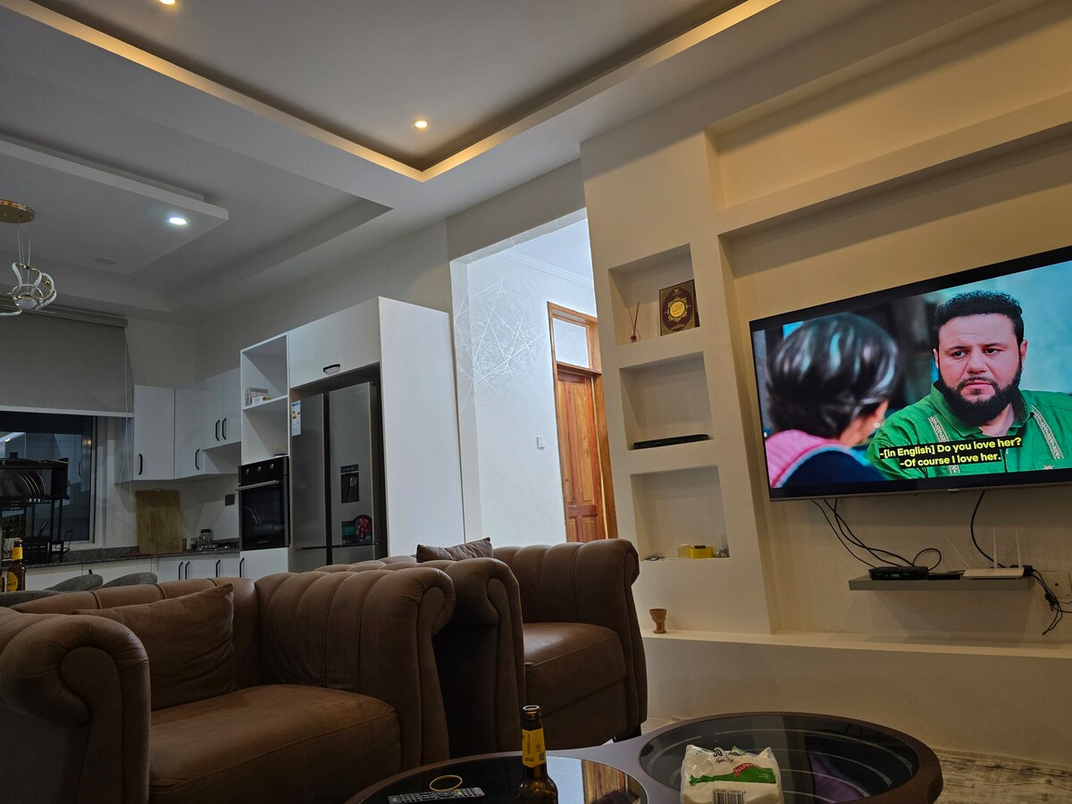 Acogedor alquiler con una amplia sala de estar y dormitorios, y una cocina lo suficientemente equipada. Este espacio espacioso y sereno se encuentra en un vecindario muy tranquilo, a solo 6 kilómetros (3,7 millas) del Aeropuerto Internacional Julius Nyerere, Dar es salaam.