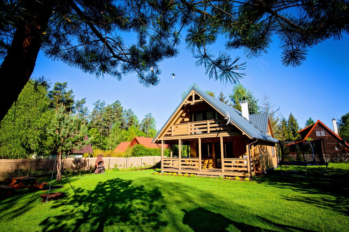 Te invitamos a una de nuestras 3 casas, ubicada en las inmediaciones de bosques y lagos. Aquí es donde te acercarás a la naturaleza, te alejarás de la ciudad, te refrescarás en la piscina o pasarás el rato con amigos. Cada una de las casas tiene 4 dormitorios con camas supletorias, 2 baños y una gran zona común, incluida una sala de estar con comedor y una cocina grande y bien equipada. Las ventanas gigantes abren las casas a un área común para los huéspedes de 3 casas, donde rodeadas por un joven jardín hay una piscina con un cenador de parrilla y un parque infantil.