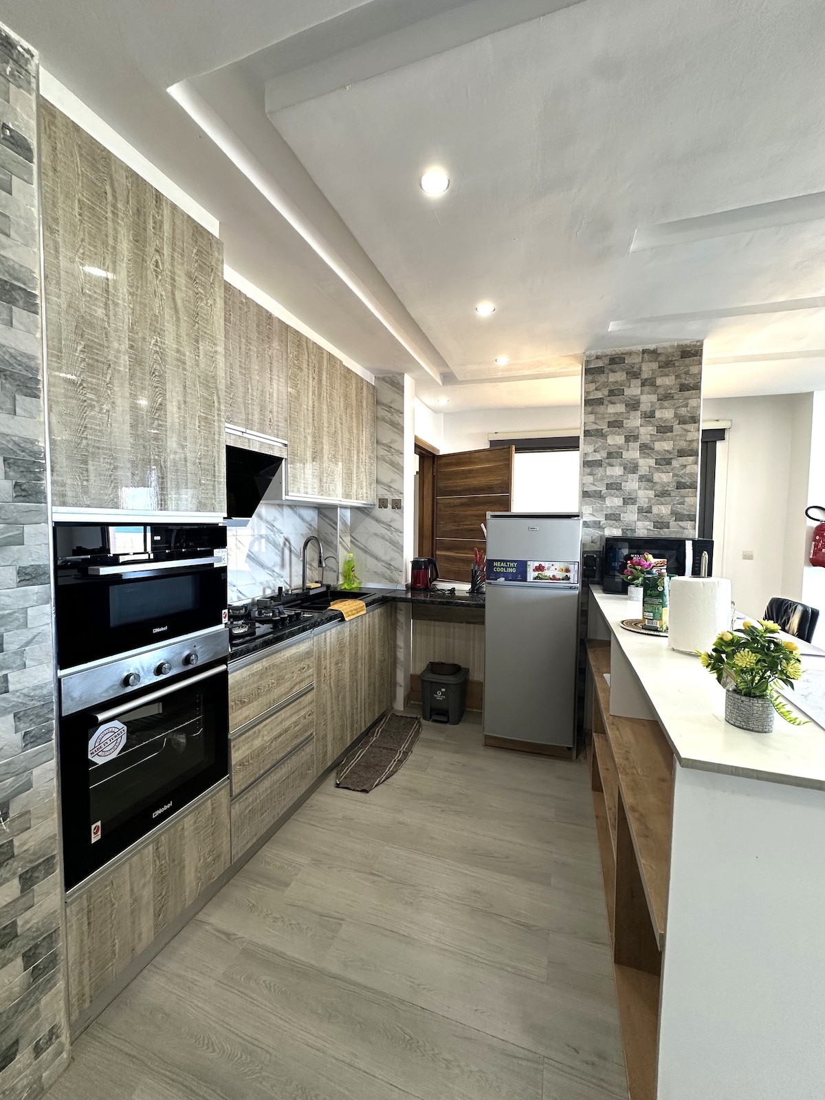 Alójate a solo unos pasos del mar en el corazón de Almadies, uno de los vecindarios más vibrantes de Dakar. Este departamento luminoso y espacioso de 3 dormitorios se encuentra a pocos pasos de restaurantes populares como Ngor, Sharky’s y Cabanon, de la tienda de alimentos American Food Store, del hotel King Fahd Palace y de La Pointe des Almadies. Recientemente renovado, ofrece una gran sala de estar, una cocina moderna totalmente equipada y tres dormitorios. Los huéspedes también disponen de estacionamiento privado, un generador y seguridad las 24 horas.